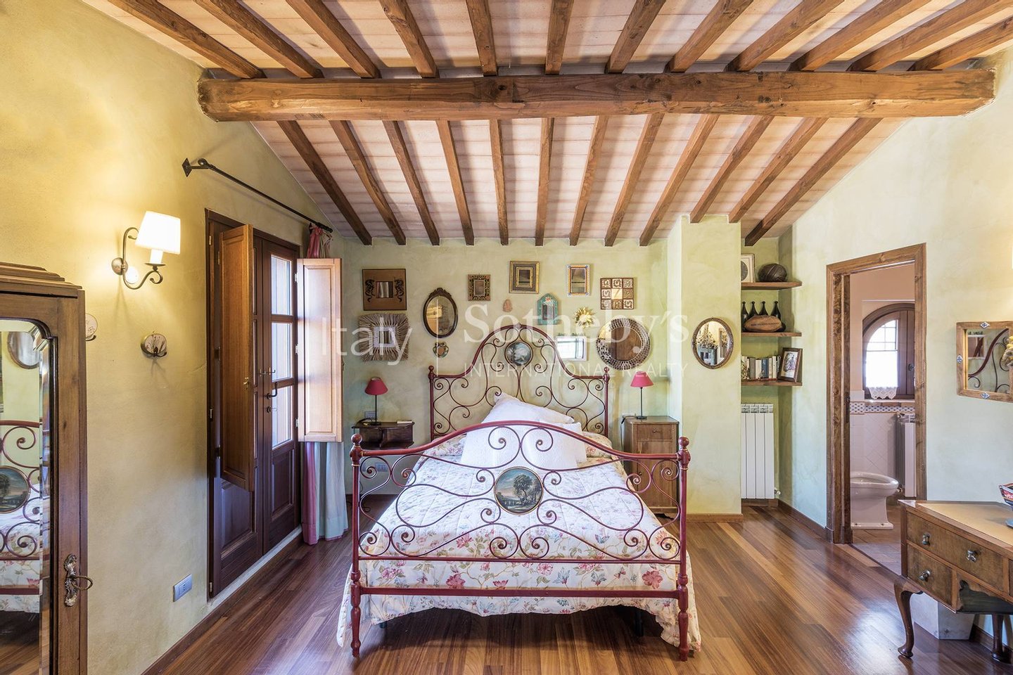 Angrenzend an die Hauptvilla befindet sich die 100 m² große Dependence auf zwei Ebenen, die über eine großzügige Terrasse mit der Villa verbunden ist. Im ersten Stock befindet sich ein Wohnbereich mit offener Küche und Wohnzimmer mit Kamin. Vervollständigt wird das Stockwerk durch zwei Schlafzimmer mit eigenem Bad und ein Loft-Büro. Das Casalino ist eine unabhängige Residenz von 191 m² mit offener Küche und einem großen Wohnzimmer mit Kamin. Im ersten Stock befinden sich 3 Schlafzimmer mit eigenem Bad und Zugang zu einer Panoramaterrasse. Ein Bürobereich mit Bad befindet sich im Dachgeschoss. Schließlich gibt es das Haus des Verwalters, das 139 m² groß ist und sich in der Nähe des Haupteingangs des Anwesens befindet. Diese Residenz umfasst ein Wohnzimmer mit offener Küche und Kamin sowie zwei Schlafzimmer mit Bad.