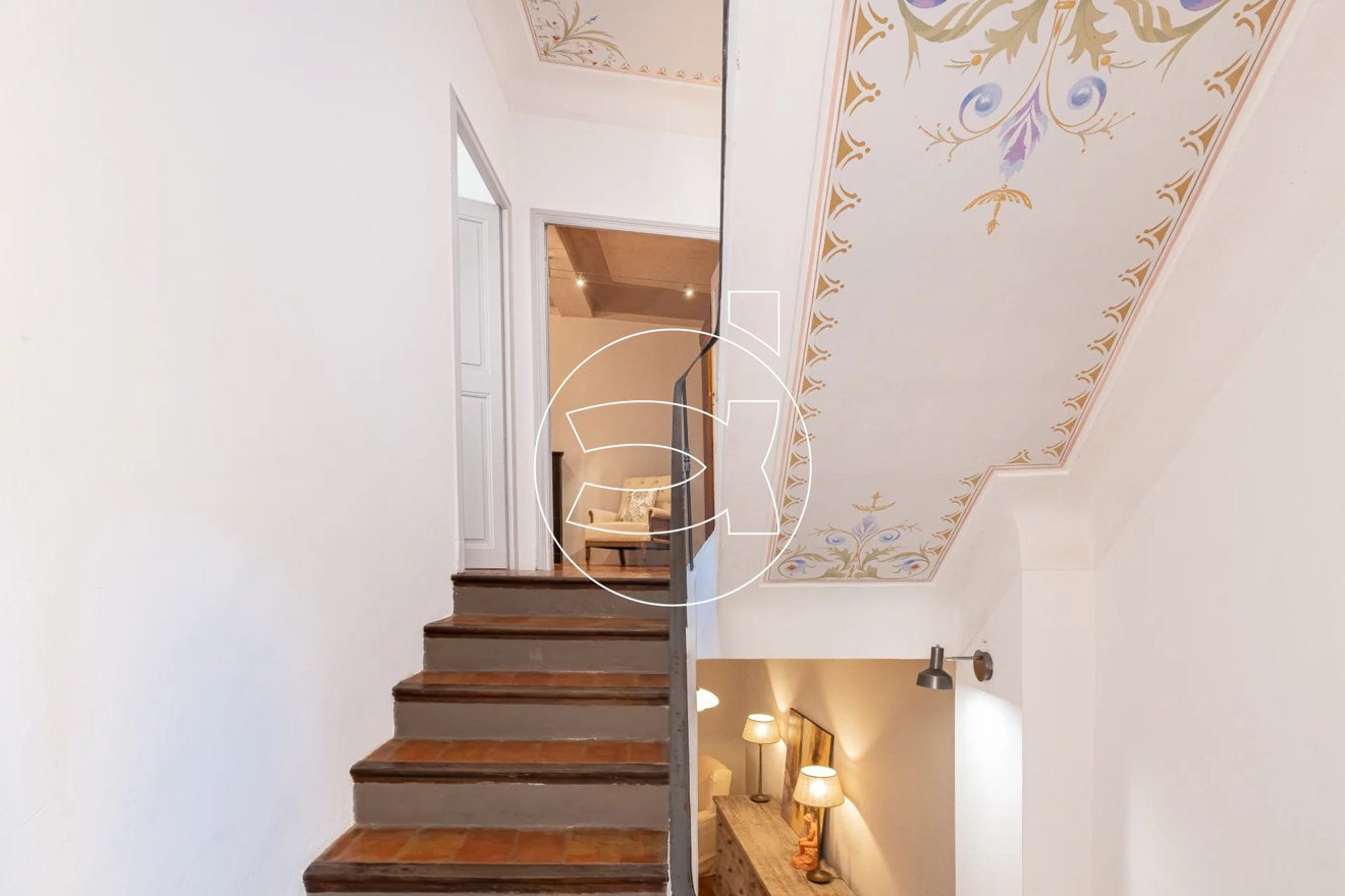 Es erwarten Sie breite, helle Treppen mit Decken, welche mit wunderschönen Fresken verziert sind.