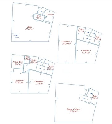 Es gibt 4 große Schlafzimmer, 1 Badezimmer und 2 separate Toiletten sowie einen Keller und einen Weinkeller.