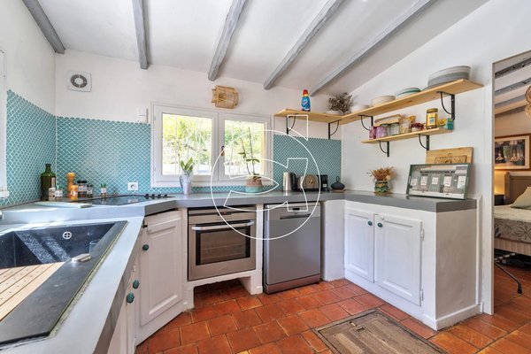 Im Gartengeschoss auf der Ebene des Pools, führt Sie der unabhängige Zugang vom Parkplatz aus zu einem Wohnbereich auf zwei Ebenen, die aus einem Esszimmer, einem Wohnzimmer mit Kamin, einem Schlafzimmer und einer separaten Küche besteht.