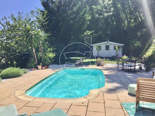 Die Villa steht auf einem 2500 m² großen, bewaldeten Grundstück mit einem 7x3 m großen Pool, der mit mehreren Bereichen/Terrassen ausgestattet ist. Hinzu kommen ein 15 m² großes Holzhaus, ein 20 m² großer Keller im Erdgeschoss sowie ein elektrisches Tor am Eingang, welches Zugang zu zahlreichen Parkplätzen bietet.