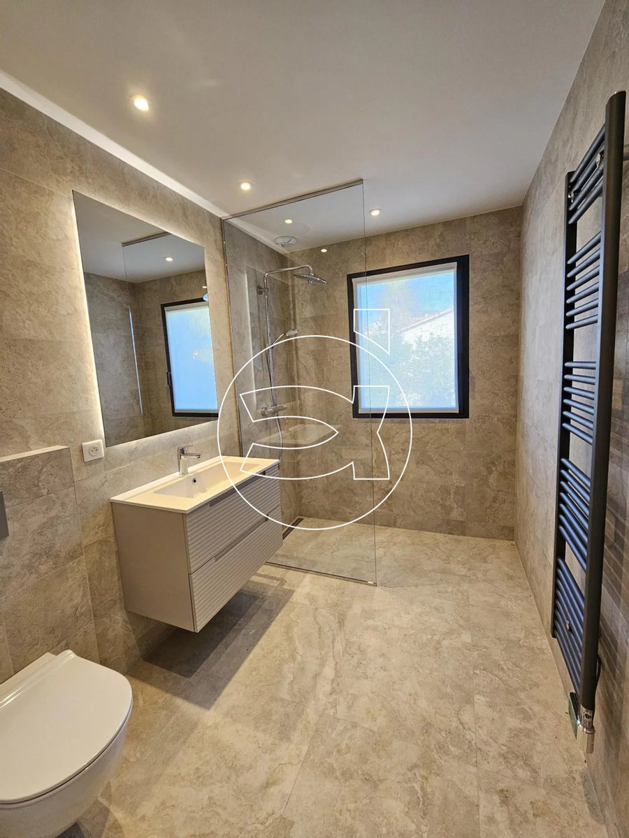 Im Obergeschoss befinden sich zwei weitere Schlafzimmer mit eigenem Bad, die auf eine Terrasse führen. Ein großer Keller umfasst einen großzügigen Freizeitraum, einen Hauswirtschafts- und einen Abstellraum.