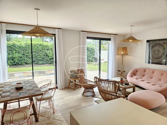 In einer ruhigen und uneinsehbaren Umgebung ideal an der Westseite von Antibes gelegen, bietet diese vollständig renovierte Villa außergewöhnlichen Wohnkomfort in unmittelbarer Nähe zum Strand.
