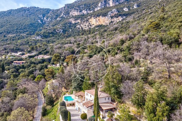 Nur wenige Minuten vom mittelalterlichen Dorf Tourrettes-sur-Loup entfernt bietet diese renovierte Villa atemberaubende Panoramablicke, mit einem Blick auf das Meer.