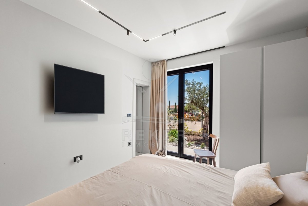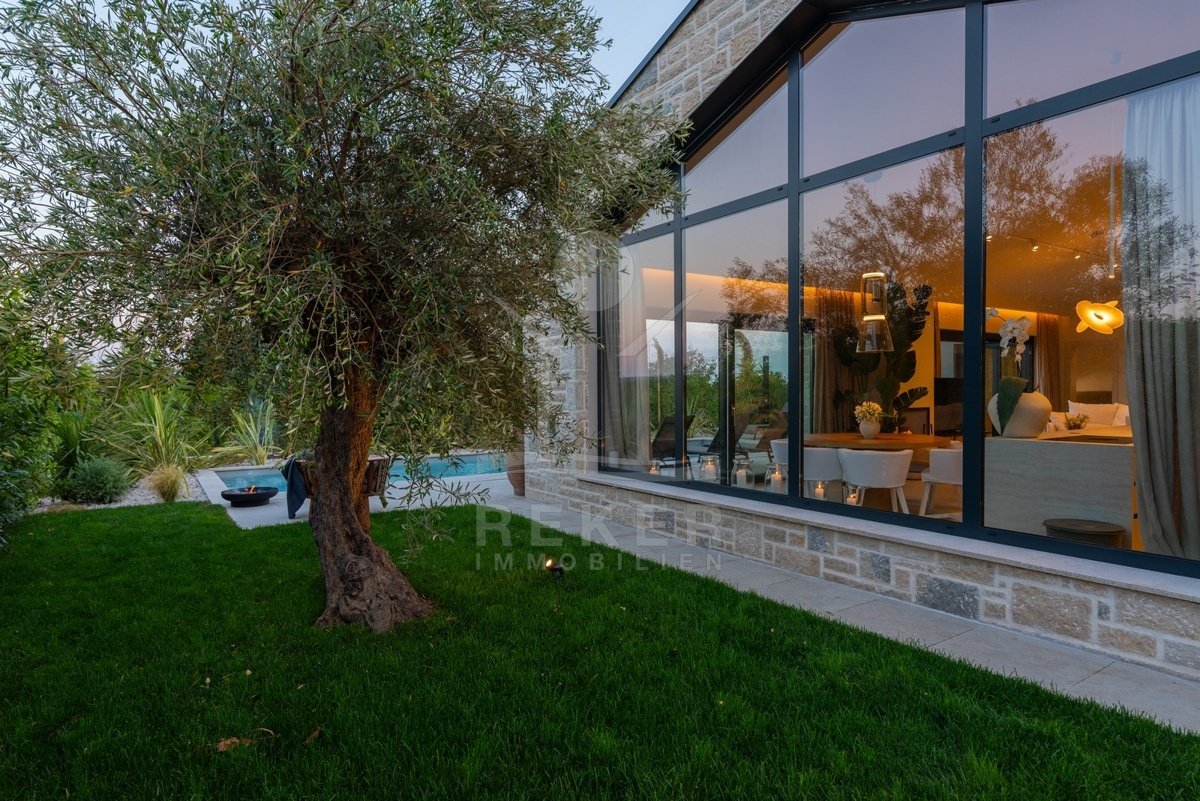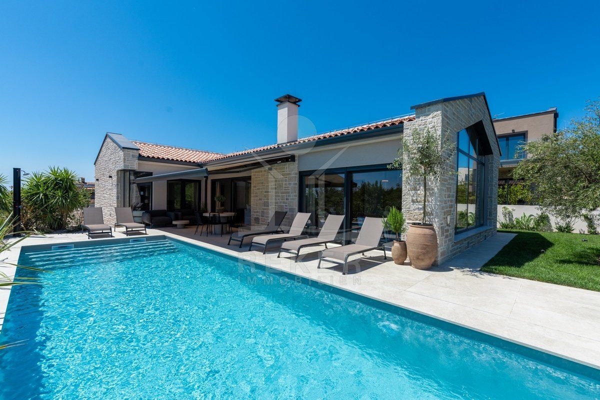Ein Highlight für Designliebhaber: moderner Bungalow mit hochwertiger Ausstattung, Fußbodenheizung & Klimaanlage. Garten, Pool und Eleganz vereint in einer traumhaften Lage bei Poreč, nur 3 km vom Meer.