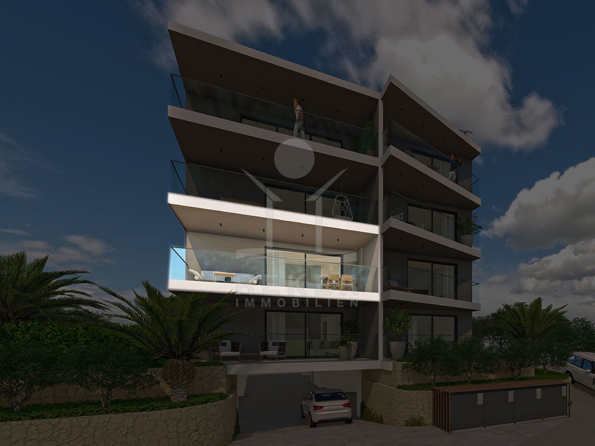 Diese Etagenwohnung zum Erstbezug im 1. Stock bietet in einem modernen, luxuriösen Wohngebäude mit einem Aufzug ein komfortables Leben. Genießen Sie den fantastischen Blick auf die Adria und die idyllische Lage, die die perfekte Balance zwischen