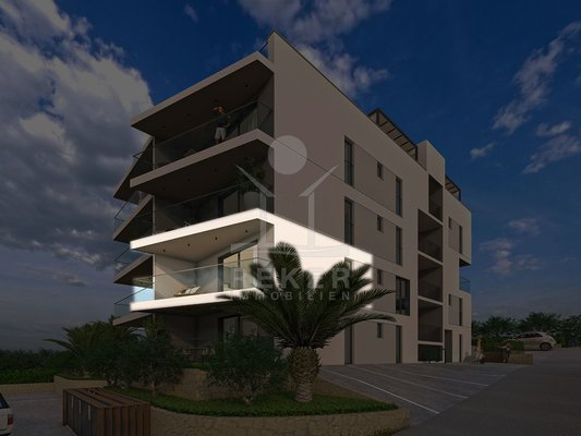 Diese Etagenwohnung zum Erstbezug im 1. Stock bietet in einem modernen, luxuriösen Wohngebäude mit einem Aufzug ein komfortables Leben. Genießen Sie den fantastischen Blick auf die Adria und die idyllische Lage, die die perfekte Balance zwischen