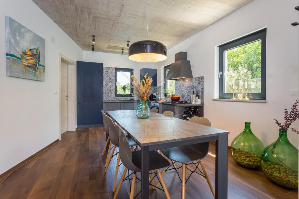 Entdecken Sie Ihre neue Wohlfühloase in dieser neuwertigen Doppelhaushälfte in der Nähe von Poreč! Diese moderne Immobilie bietet nicht nur einen stilvoll gestalteten Innenraum, sondern auch einen einladenden Pool und einen schönen Garten – perfekt für entspannte Nachmittage im Freien oder gesellige Grillabende mit Freunden und Familie. Dank der hochwertigen Bauweise und Ausstattung stellt diese Doppelhaushälfte eine herausragende Investitionsmöglichkeit dar.