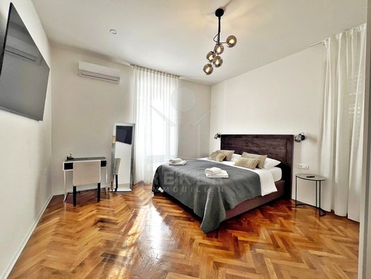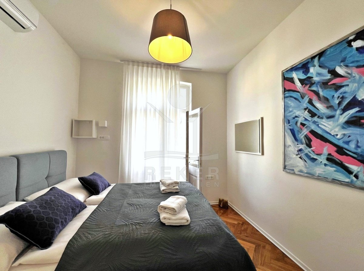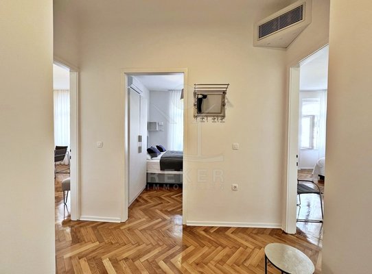 Mitten im Zentrum von Opatija – in einer renovierten Villa mit Geschichte. Die Wohnung liegt im dritten Stock eines charmanten, österreichisch-ungarischen Gebäudes mit insgesamt fünf Etagen. Die Fassade: historisch. Das Innenleben: modernisiert. Der