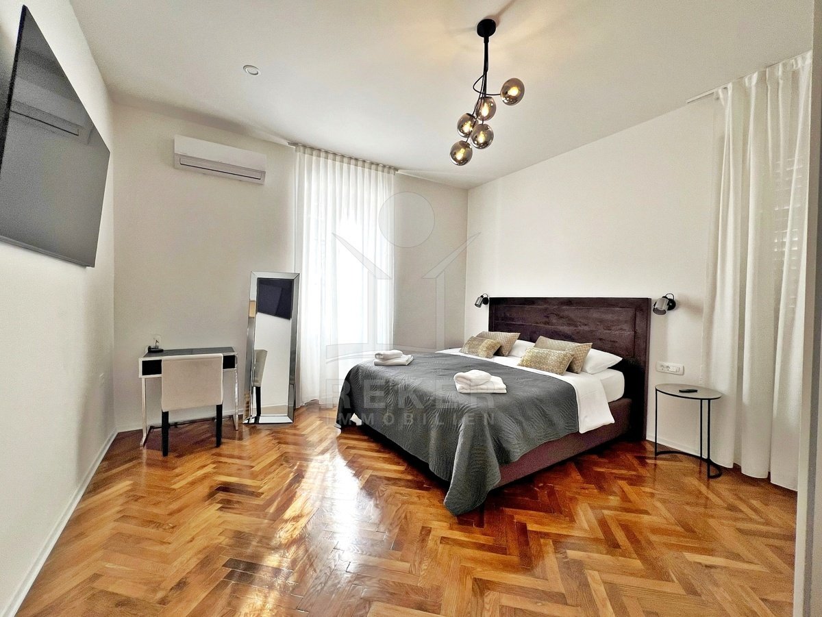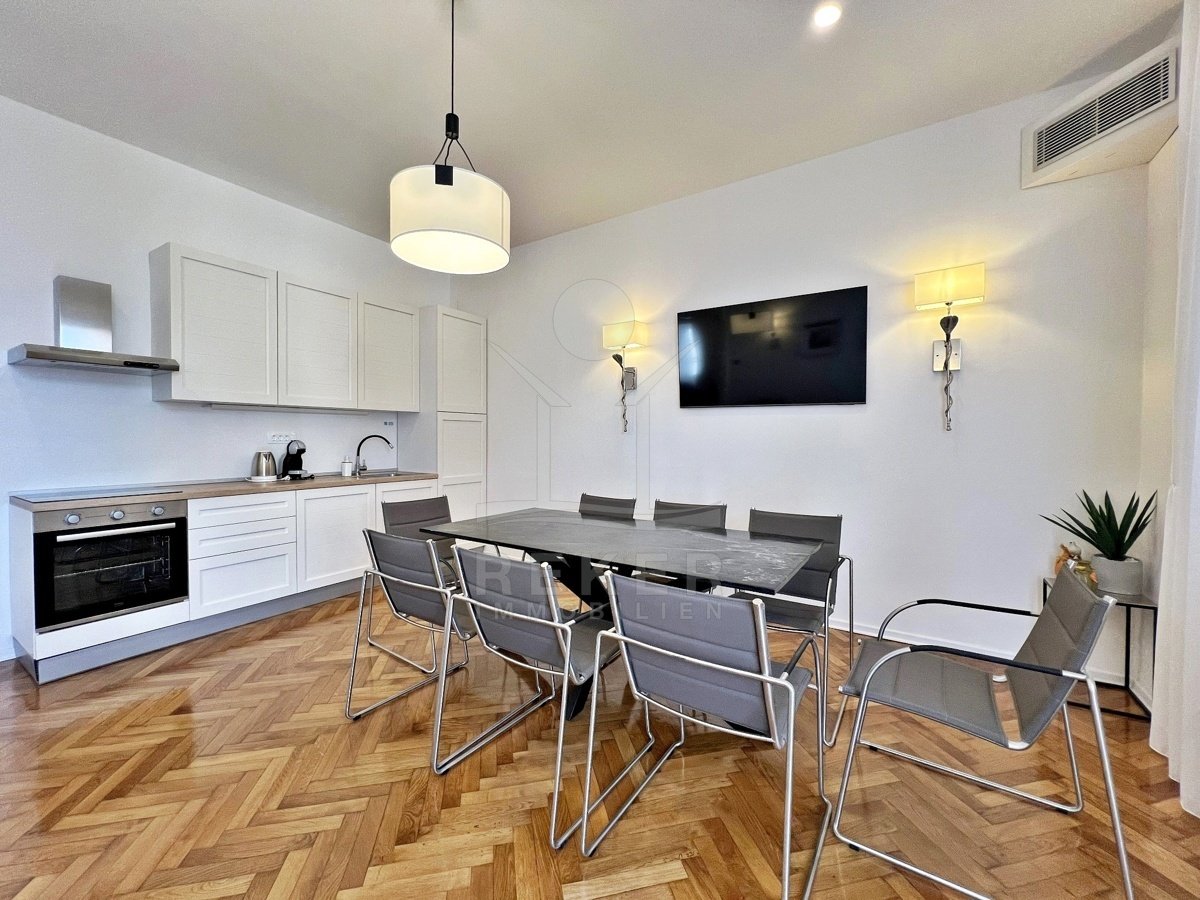 In einer prachtvollen Villa aus der kaiserlich-königlichen Zeit wartet diese Wohnung auf Sie. Mit Originalböden, Meeresblick vom Balkon und Möbeln im Preis. Stilvoll. Selten. Zentral.
