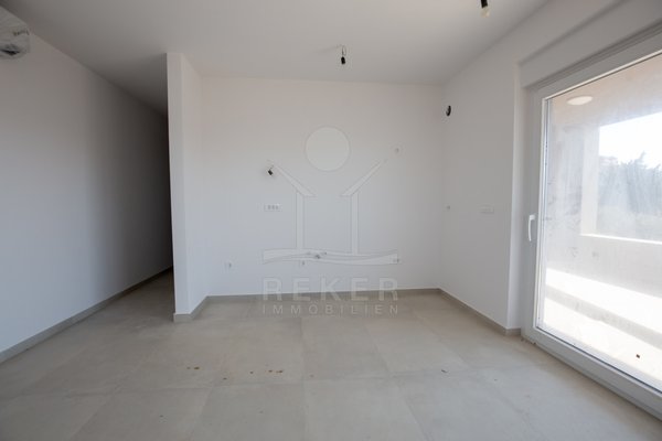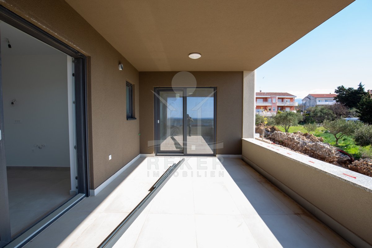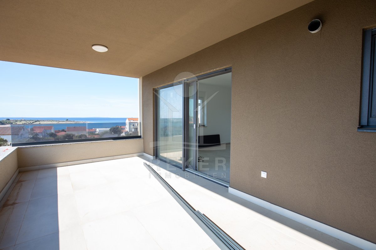 Novalja. Insel Pag. Klare Luft, ruhige Nachbarschaft, direkter Meerblick. Kein Trubel, einfach nur Wasser. Jede Wohnung schaut aufs Meer. Die Parkplätze? Direkt neben dem Haus. Die Zufahrt? Unkompliziert. So sieht eine entspannte Lage aus.