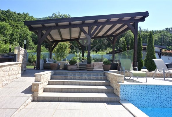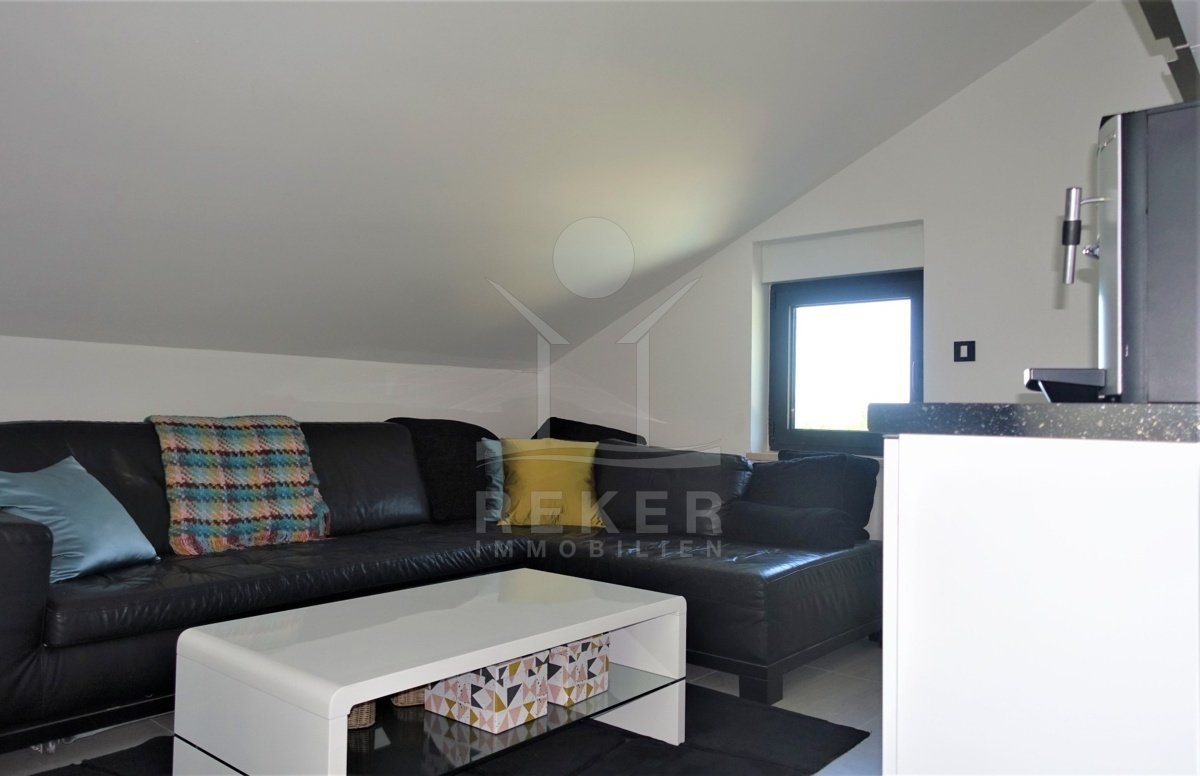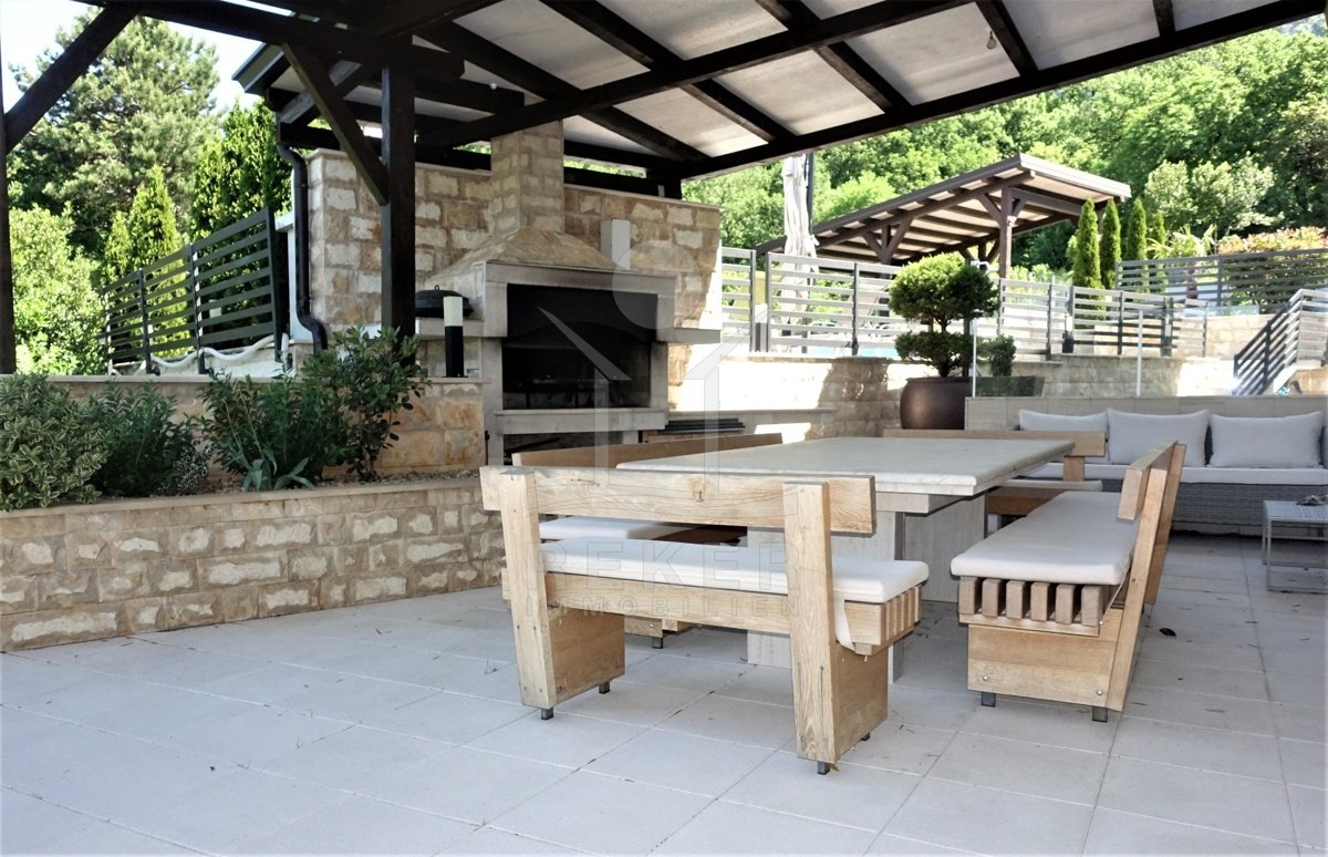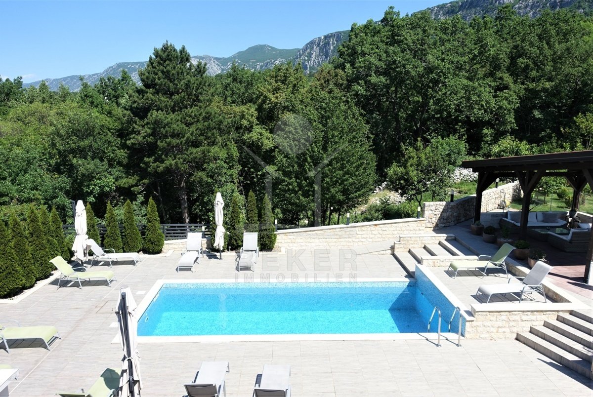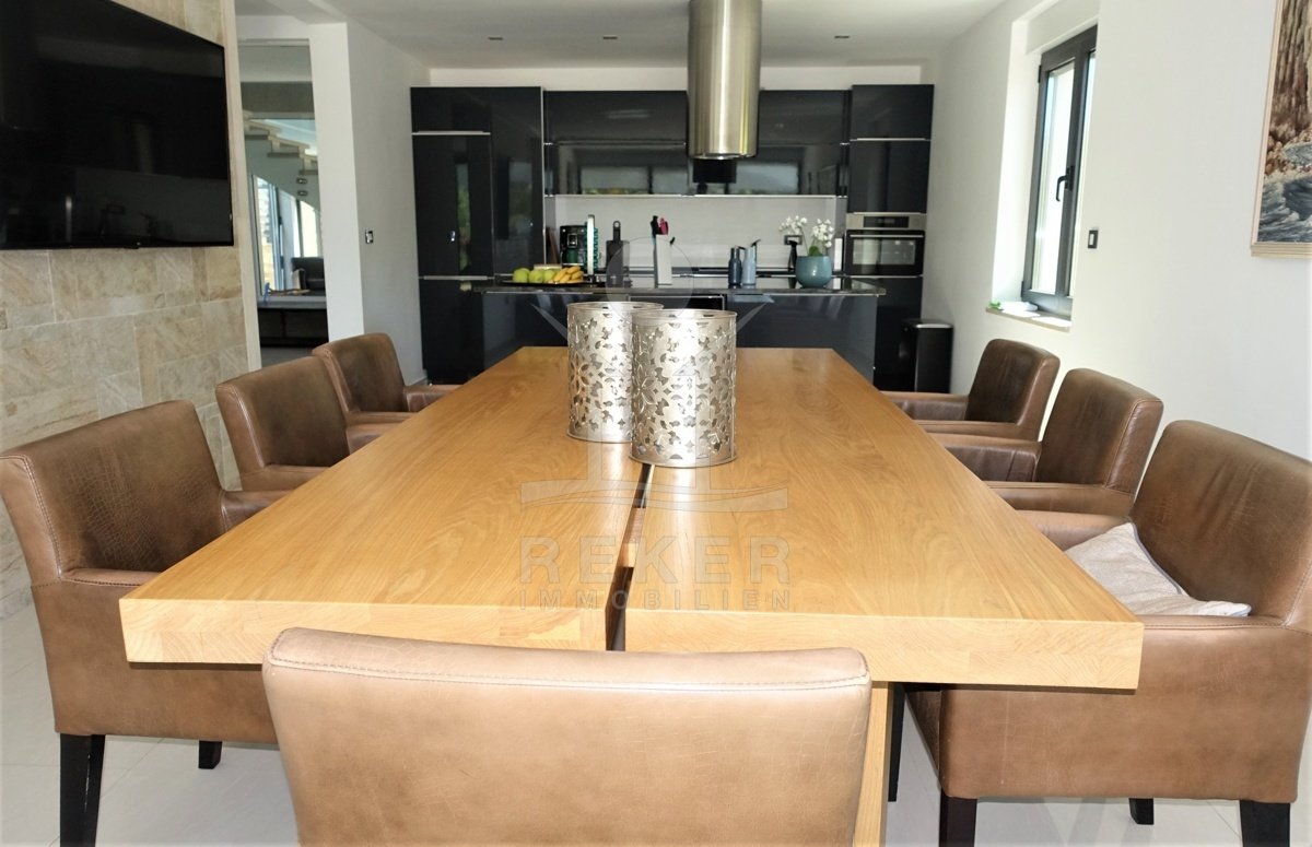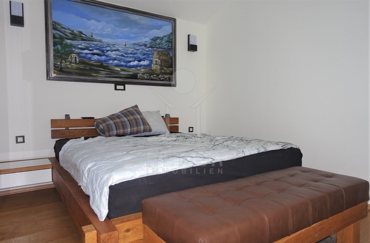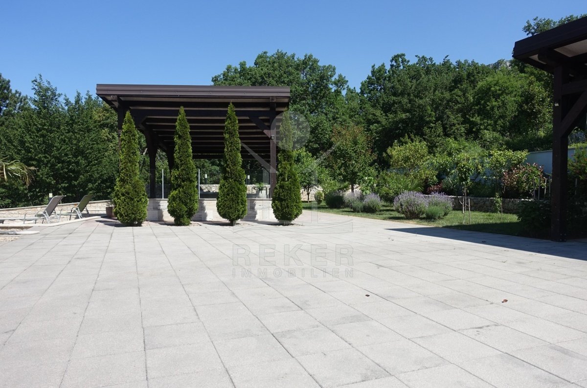 Zehn Minuten zum Meer, doch gefühlt ganz weit weg vom Trubel: Dieses Haus steht in Grižane-Belgrad, mitten im Grünen. Drumherum: Wald, Weite, Ruhe. Und vorne raus? Der Blick geht über die Landschaft bis zur Insel Krk. Die Nachbarschaft ist entspannt, die Zufahrt unkompliziert. Wer Privatsphäre sucht, wird hier fündig.