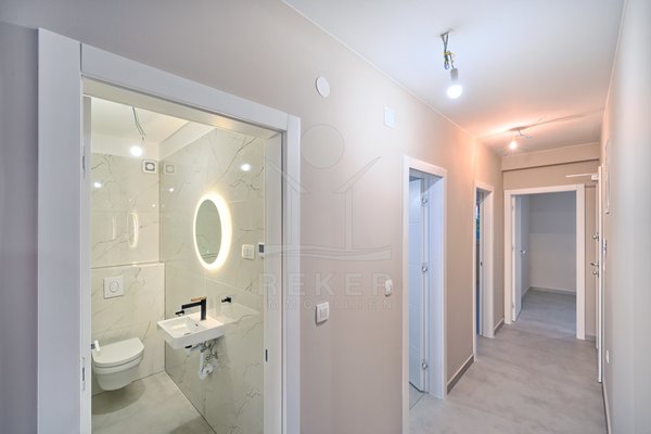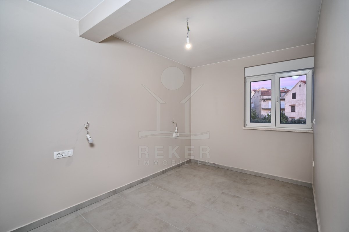 Brodarica. Ruhig, sonnig, und nur 150 Meter vom Strand entfernt. Die Wohnung liegt im zweiten Stock eines modernen Wohngebäudes. Zwei feste Stellplätze sind inklusive. Einfach parken und hoch ins Penthouse. Das Gebäude ist neu, die Wohnung sofort bezugsbereit.