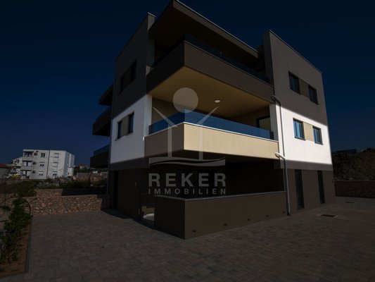 Neubau in Novalja, 350 Meter vom Strand. Sonne, Salzluft, Meer – alles zu Fuß erreichbar. Die Lage? Ruhig. Ein guter Platz für entspannte Tage. Oder für alle, die einfach gern nah am Wasser wohnen.