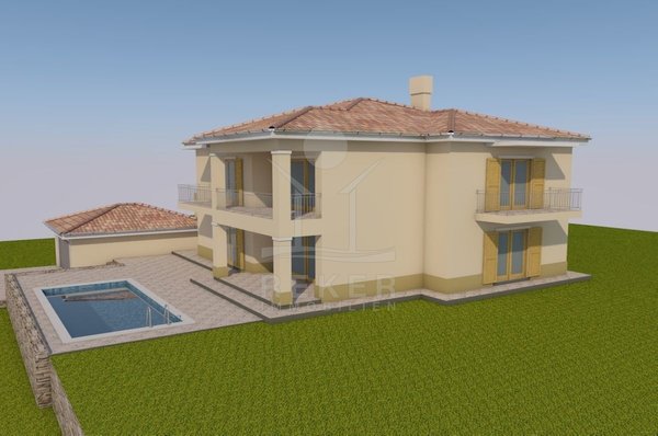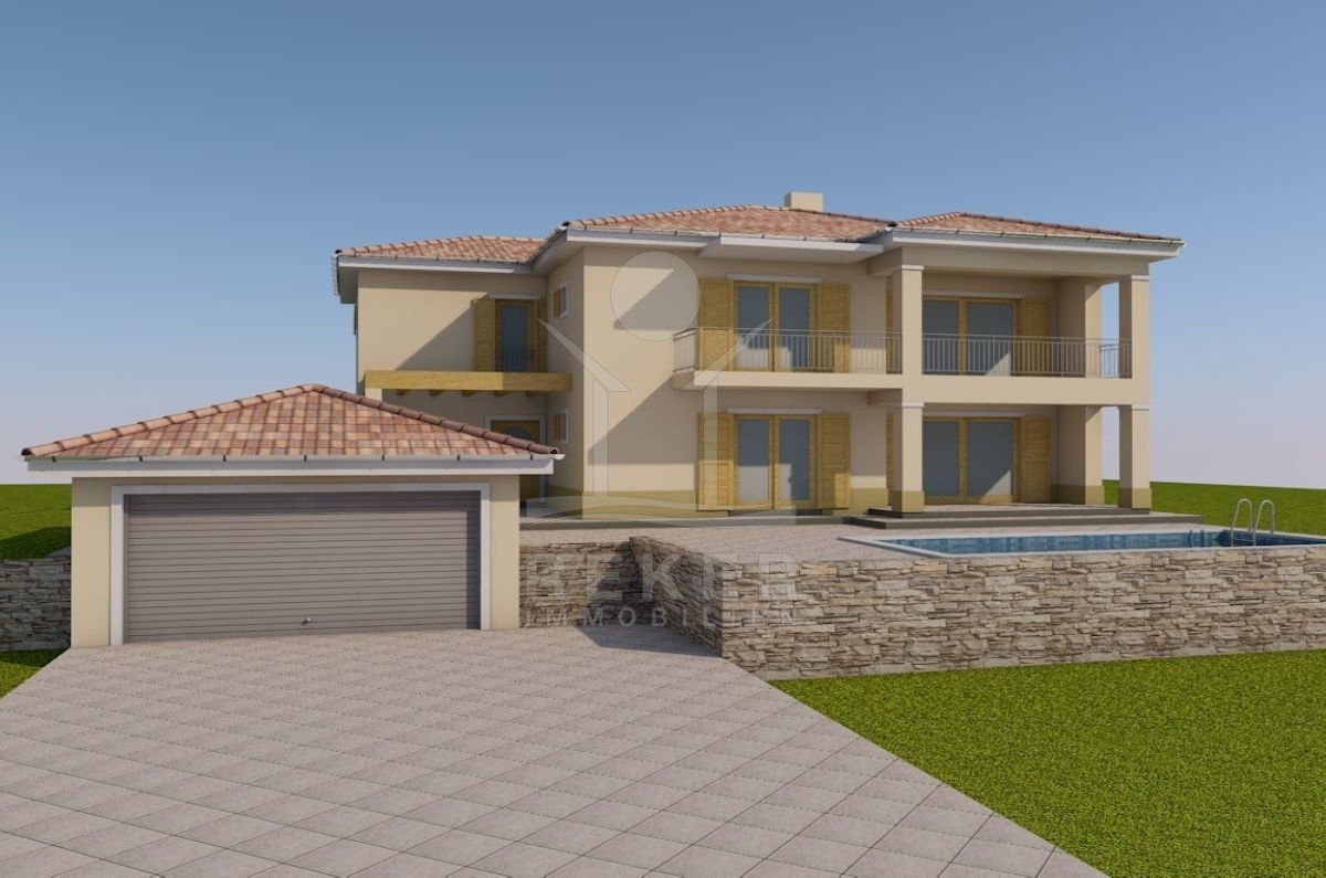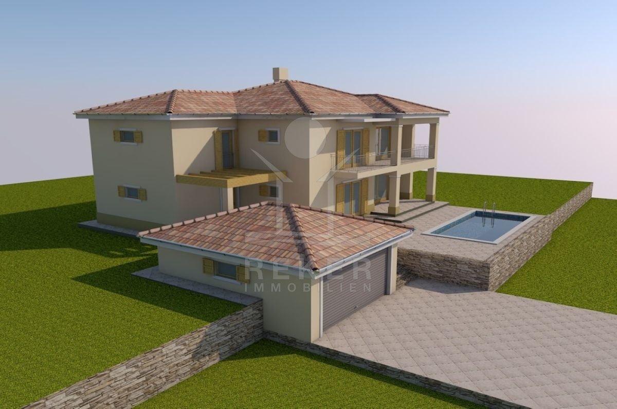 Dieses 1144 m² große Grundstück liegt ruhig am Waldrand bei Malinska und bietet Meerblick. Eine gültige Baugenehmigung für zwei Wohneinheiten, Garage und Pool ist bereits vorhanden.