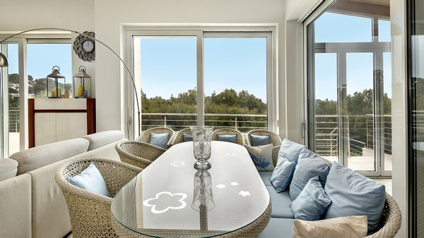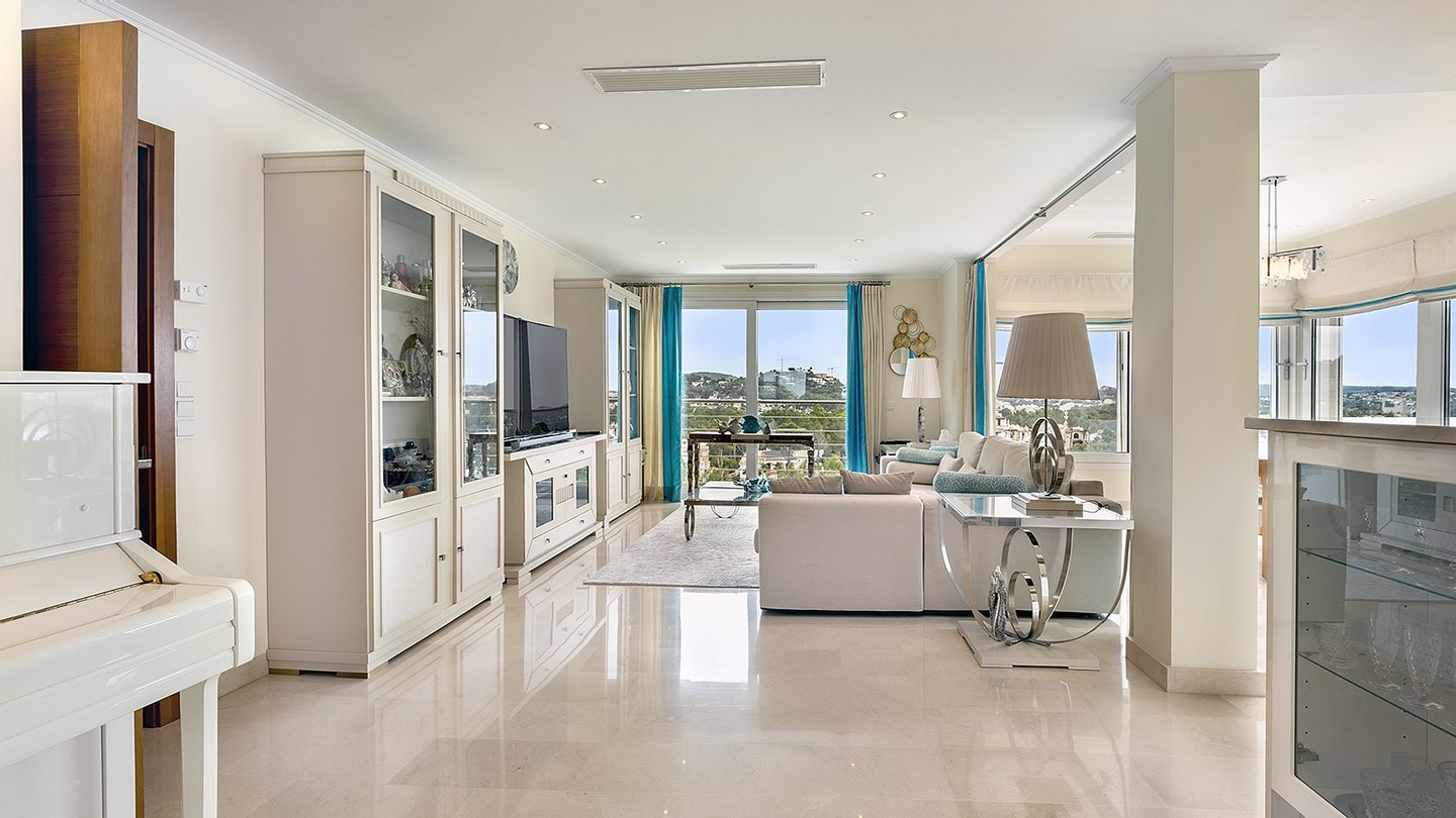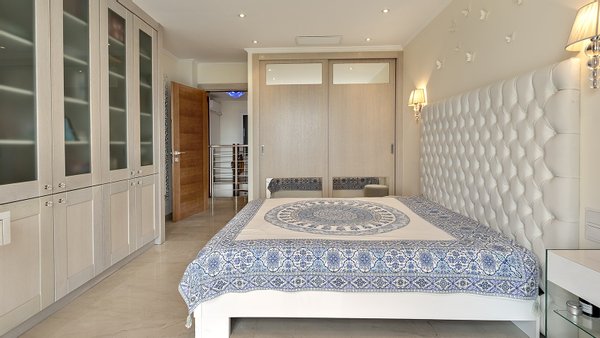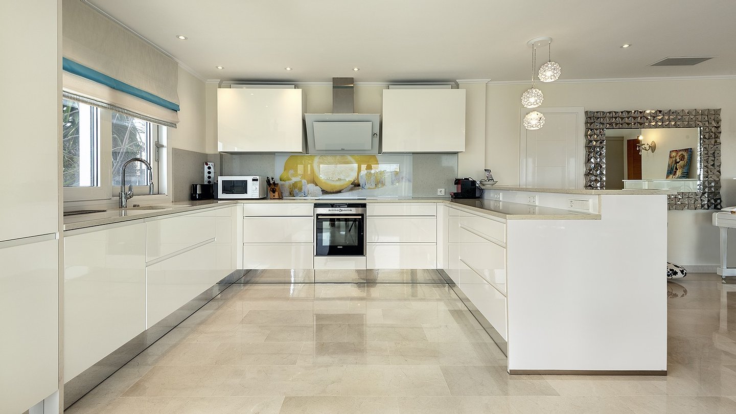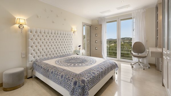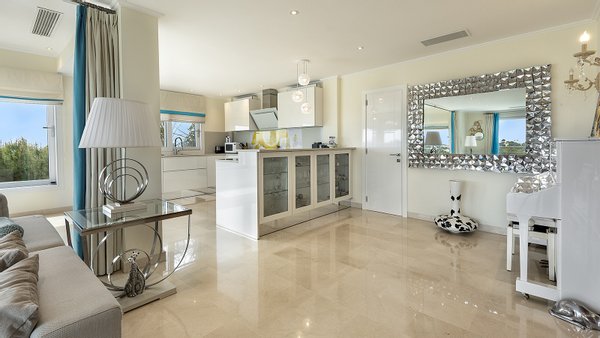 Diese beeindruckende Immobilie verfügt über insgesamt drei Schlafzimmer, die einen Rückzugsort für die ganze Familie bieten, sowie drei luxuriöse Badezimmer, wovon jedes en -suite ist und somit höchsten Komfort garantiert.Die Innenausstattung der Immobilie lässt keine Wünsche offen. Sie betreten ein helles und freundliches Ambiente. Die eleganten Holzbalkendecken verleihen den Räumen eine gemütliche Note, während der edle Marmorboden im gesamten Wohnbereich einen Hauch von Luxus ausstrahlt. Für ganzjährig angenehme Temperaturen in den Räumlichkeiten sorgt eine Klimaanlage (w/k). Das entzückende Objekt verfügt über zwei offene Einbauküchen, ausgestattet mit hochwertigen Elektrogeräten der Marke Bosch. Ein echtes Highlight ist der hauseigene Wellnessbereich, bestehend aus einem beeindruckenden Indoor-Pool und einem römischen Bad. Stauraum ist dank eines Abstellraums , Hauswirtschaftsraum und Einbauschränken reichlich vorhanden.Der großzügige Außenbereich rundet das Angebot gekonnt ab. Genießen Sie das schöne Wetter in Ihrem eigenen Garten mit automatischer Bewässerung und Beleuchtung, oder den wunderschönen Meer & Panoramablick auf insgesamt 188m2 Terrassenfläche. Parkmöglichkeiten sind selbstverständlich ebenfalls vorhanden. Es stehen Ihnen Garagenstellplätze, gesichert durch ein elektrisches Zufahrtstor, zur Verfügung.