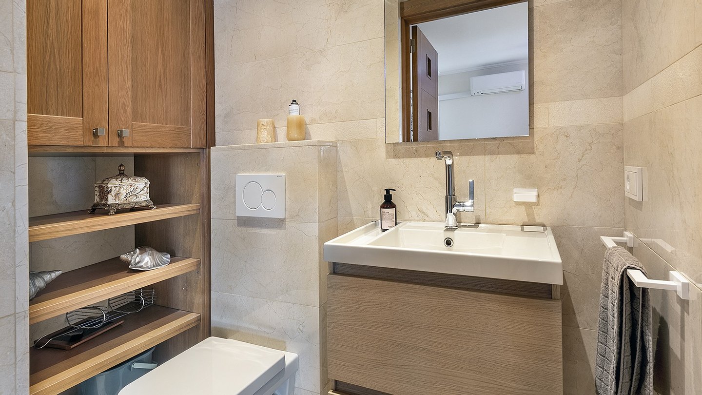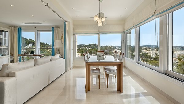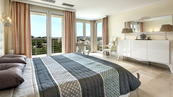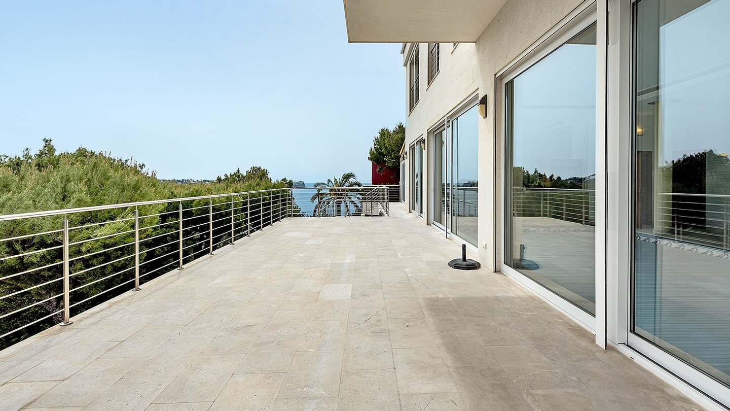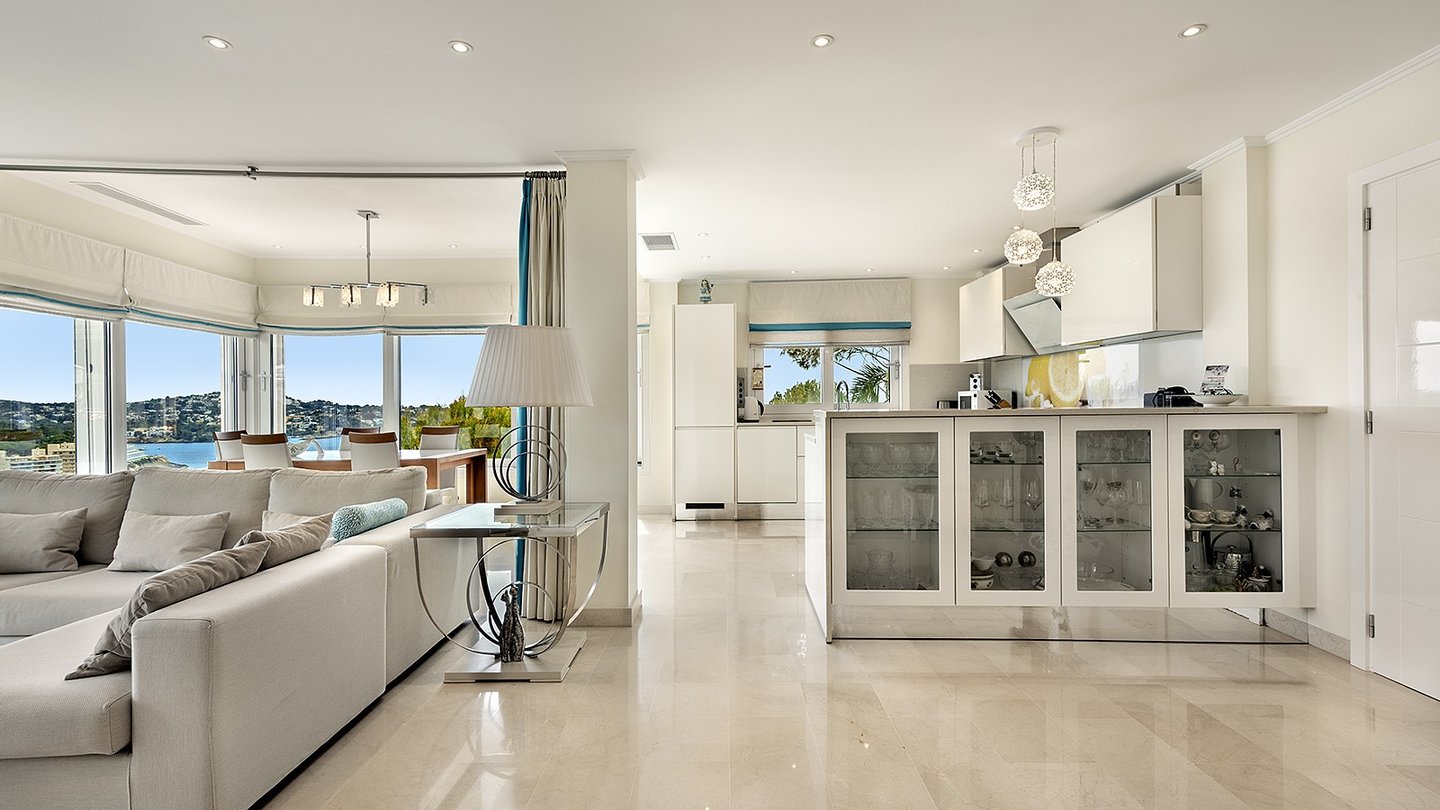 Diese beeindruckende Immobilie verfügt über insgesamt drei Schlafzimmer, die einen Rückzugsort für die ganze Familie bieten, sowie drei luxuriöse Badezimmer, wovon jedes en -suite ist und somit höchsten Komfort garantiert.Die Innenausstattung der Immobilie lässt keine Wünsche offen. Sie betreten ein helles und freundliches Ambiente. Die eleganten Holzbalkendecken verleihen den Räumen eine gemütliche Note, während der edle Marmorboden im gesamten Wohnbereich einen Hauch von Luxus ausstrahlt. Für ganzjährig angenehme Temperaturen in den Räumlichkeiten sorgt eine Klimaanlage (w/k). Das entzückende Objekt verfügt über zwei offene Einbauküchen, ausgestattet mit hochwertigen Elektrogeräten der Marke Bosch. Ein echtes Highlight ist der hauseigene Wellnessbereich, bestehend aus einem beeindruckenden Indoor-Pool und einem römischen Bad. Stauraum ist dank eines Abstellraums , Hauswirtschaftsraum und Einbauschränken reichlich vorhanden.Der großzügige Außenbereich rundet das Angebot gekonnt ab. Genießen Sie das schöne Wetter in Ihrem eigenen Garten mit automatischer Bewässerung und Beleuchtung, oder den wunderschönen Meer & Panoramablick auf insgesamt 188m2 Terrassenfläche. Parkmöglichkeiten sind selbstverständlich ebenfalls vorhanden. Es stehen Ihnen Garagenstellplätze, gesichert durch ein elektrisches Zufahrtstor, zur Verfügung.