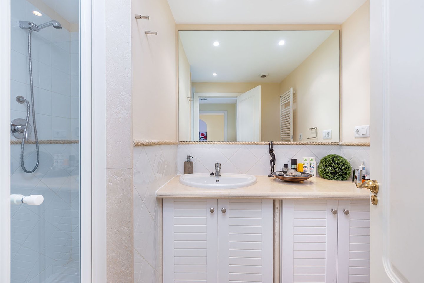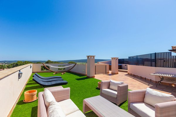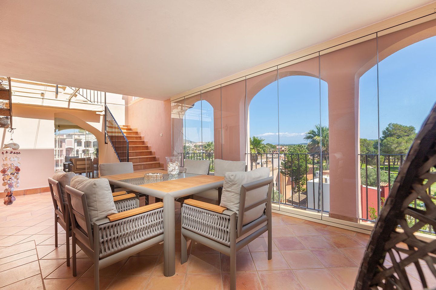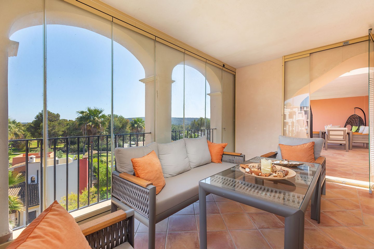 Sie grenzt direkt an den Golfplatz Santa Ponsa III und bietet zudem einen Indoor-Pool, eine Tiefgarage mit Abstellräumen und Aufzug, PKW-Stellplätze und einen Concierge-Service.