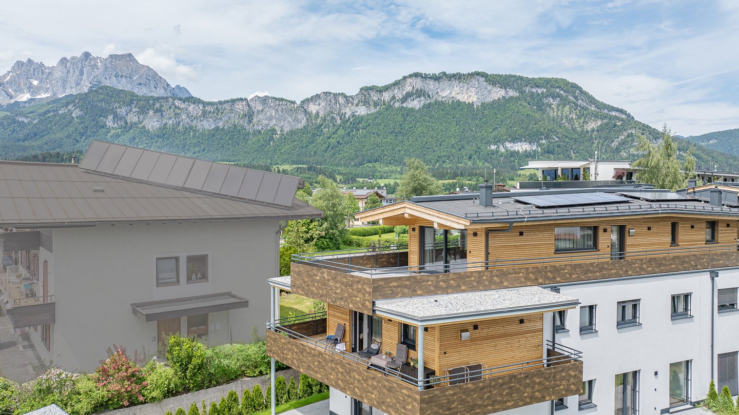 Zum Verkauf steht ein ca. 85 m² großes, exklusives Neubau-Penthouse in zentraler Ruhelage von St. Johann in Tirol, mit Blick auf den Wilden Kaiser und das Kitzbüheler Horn.