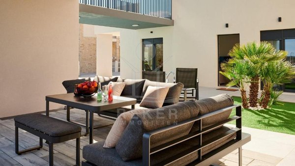 Das 590 Quadratmeter große Grundstück bietet Privatsphäre und Urlaubsgefühl in einem. Zwei eigenständige Gebäude, ein Pool zum Abtauchen und eine Terrasse mit Whirlpool-Vorbereitung. Der Stil? Modern und zurückhaltend. Dazu: vier Stellplätze direkt vor der Tür.