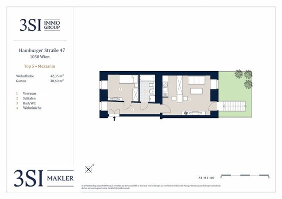 Kleine 2-Zimmer-Oase mit eigenem Garten und direkter U-Bahn-Anbindung in Top-Lage des 3. Bezirks