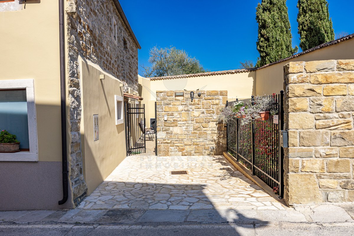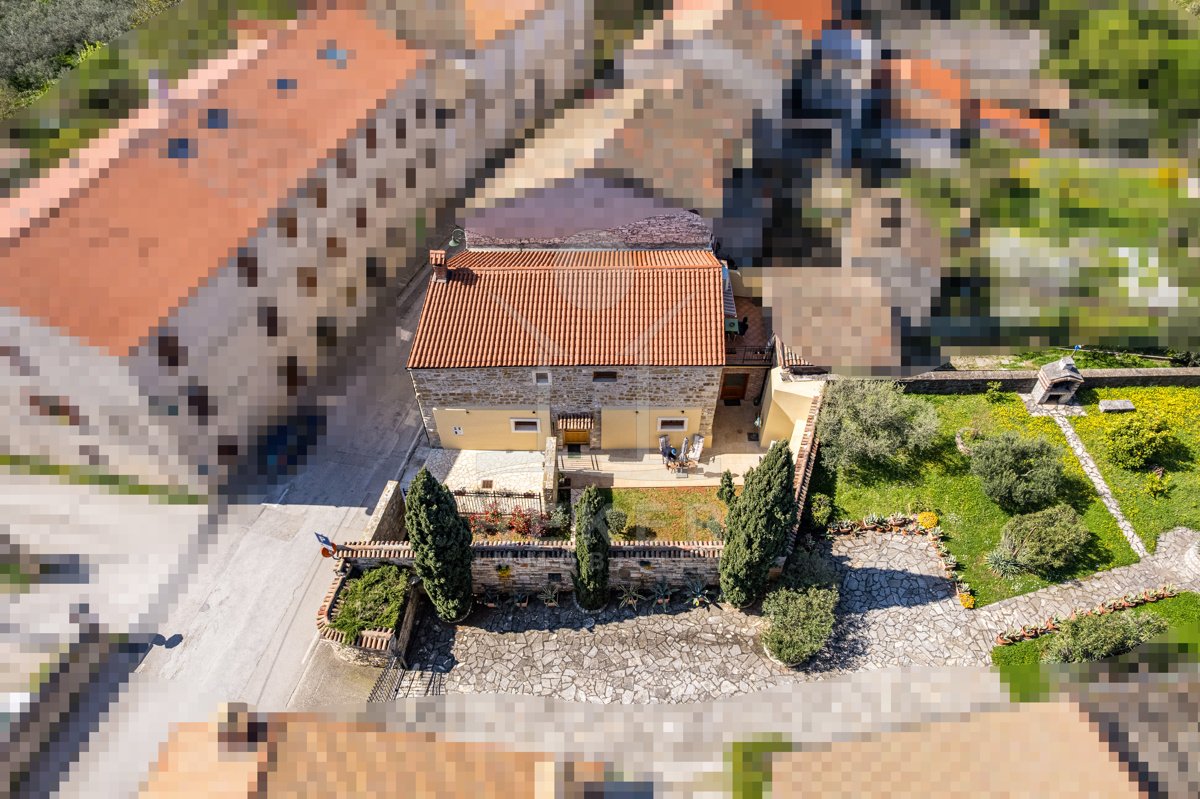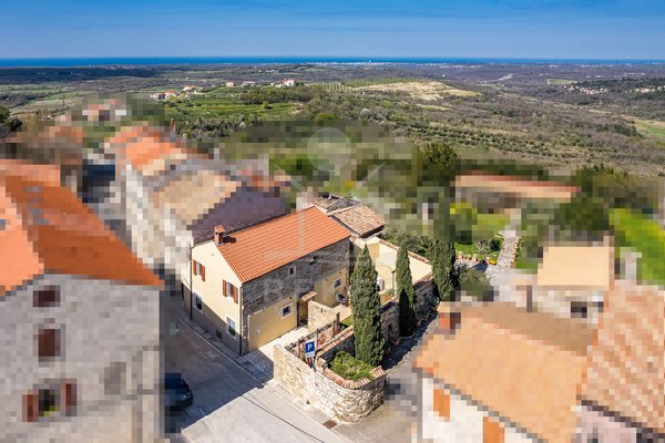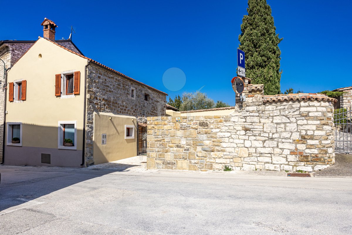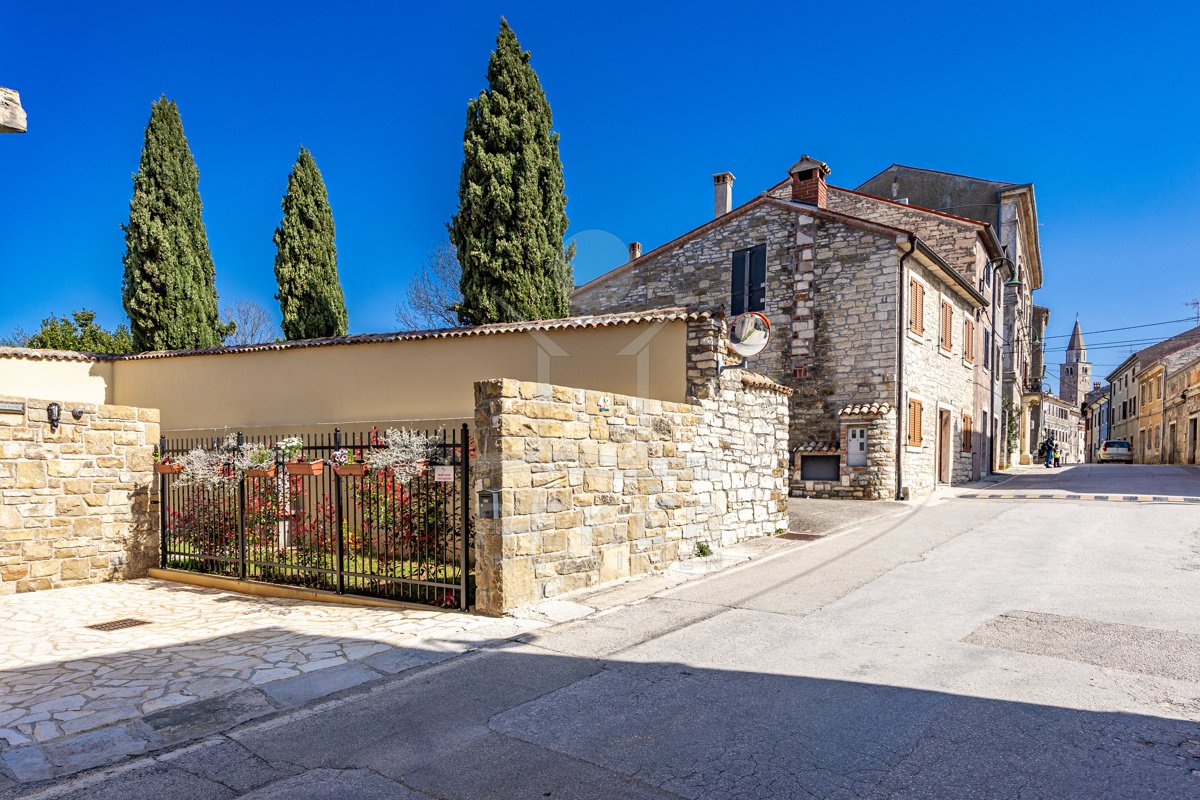 Buje liegt im Norden Istriens, nicht weit von der slowenischen Grenze. Weinberge, Olivenhaine, alte Gassen – hier lebt man ruhig, aber gut angebunden. Die Küste? Zehn Minuten mit dem Auto. Die Autobahn? Gleich ums Eck. Das Haus selbst steht in einer