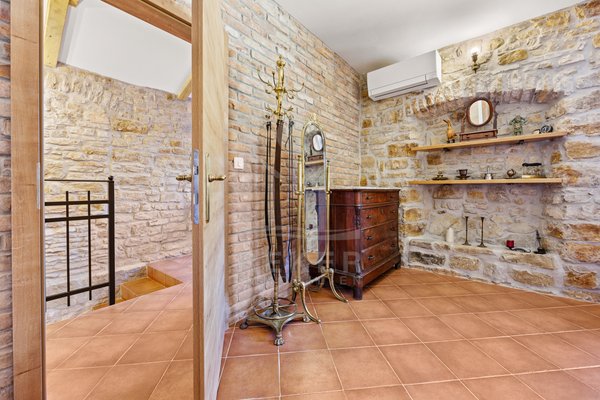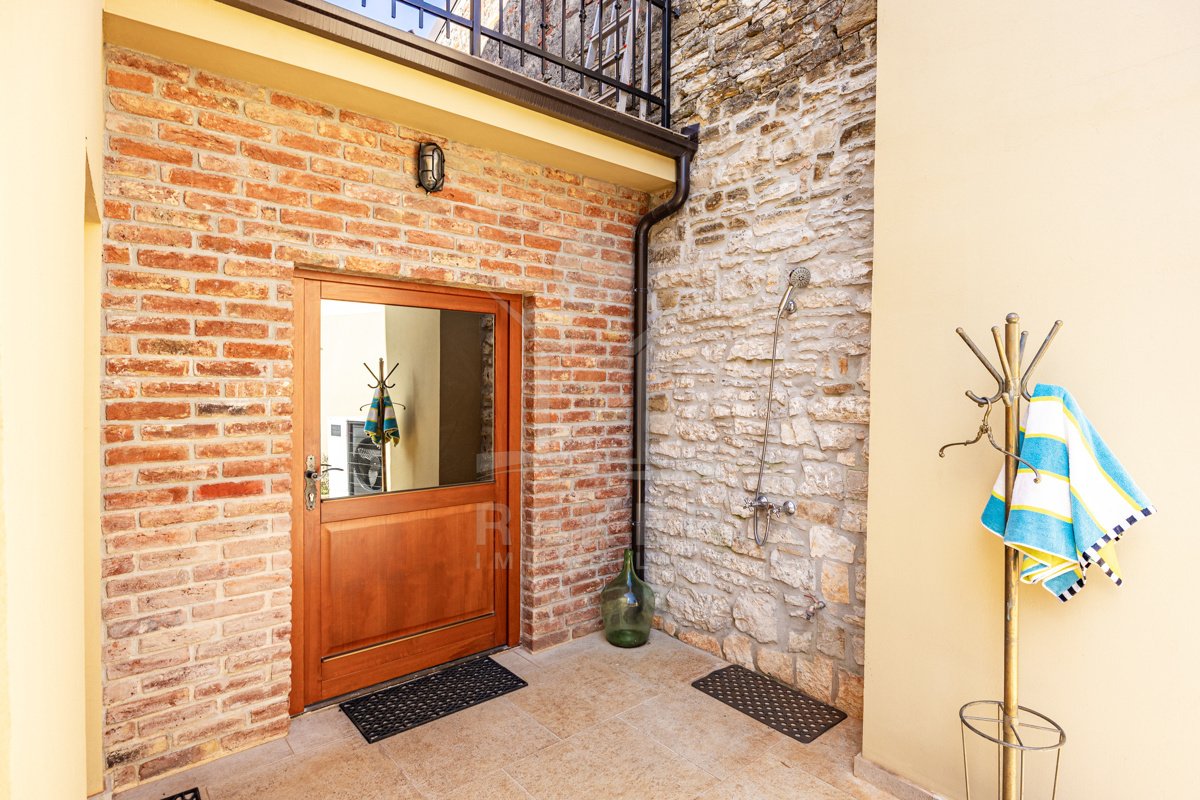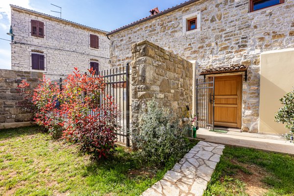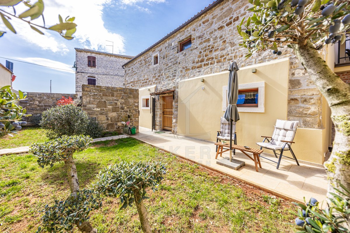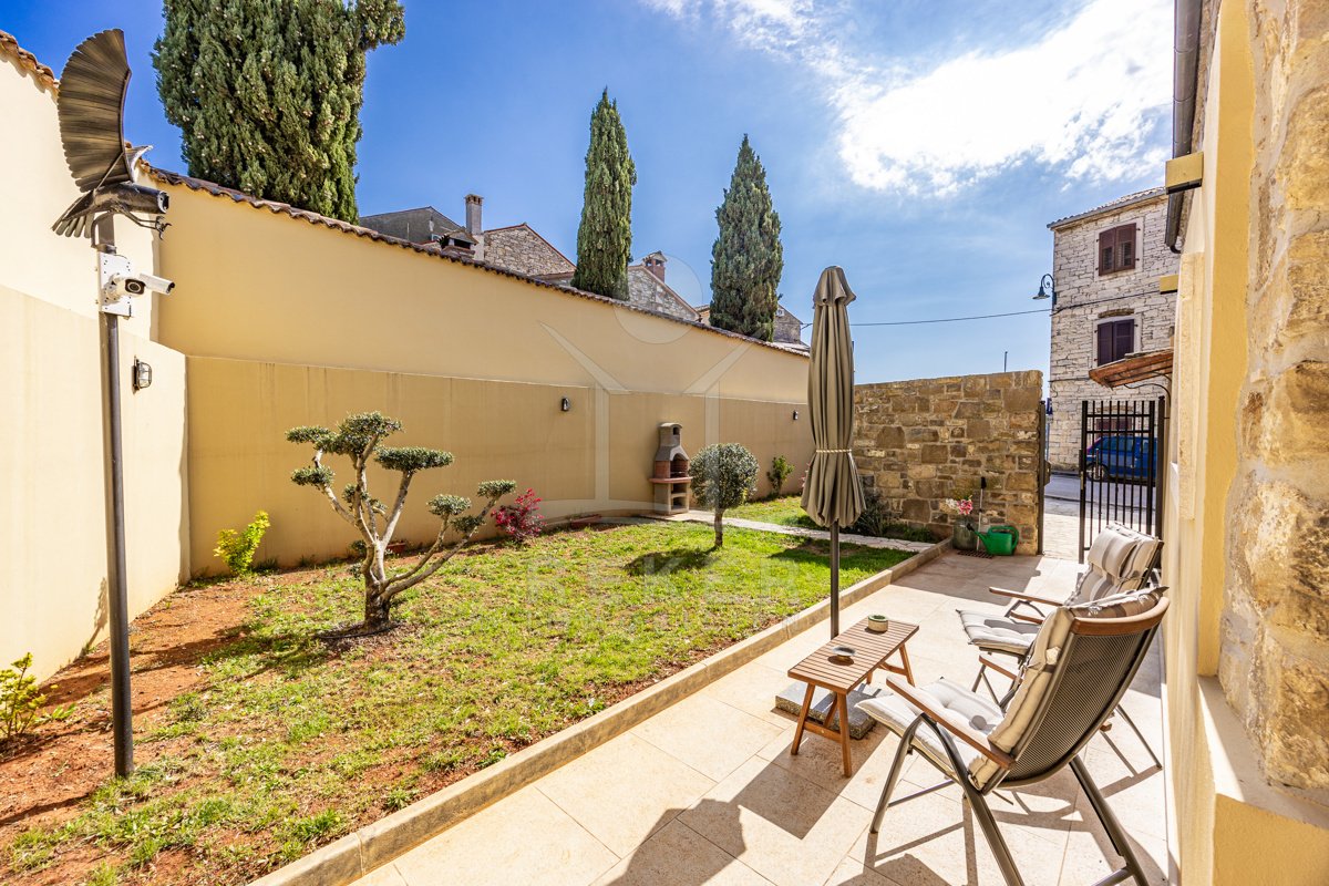 Buje liegt im Norden Istriens, nicht weit von der slowenischen Grenze. Weinberge, Olivenhaine, alte Gassen – hier lebt man ruhig, aber gut angebunden. Die Küste? Zehn Minuten mit dem Auto. Die Autobahn? Gleich ums Eck. Das Haus selbst steht in einer