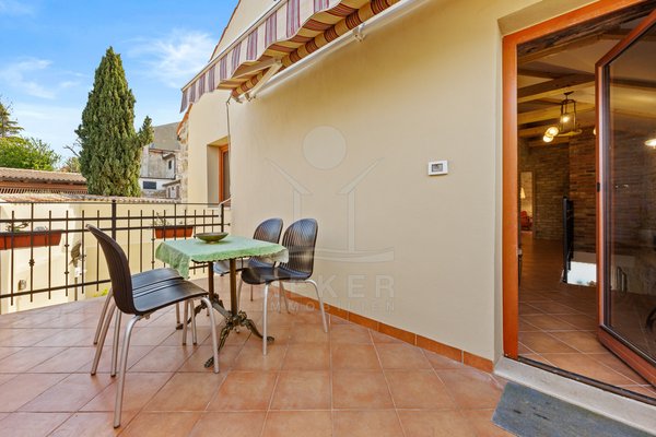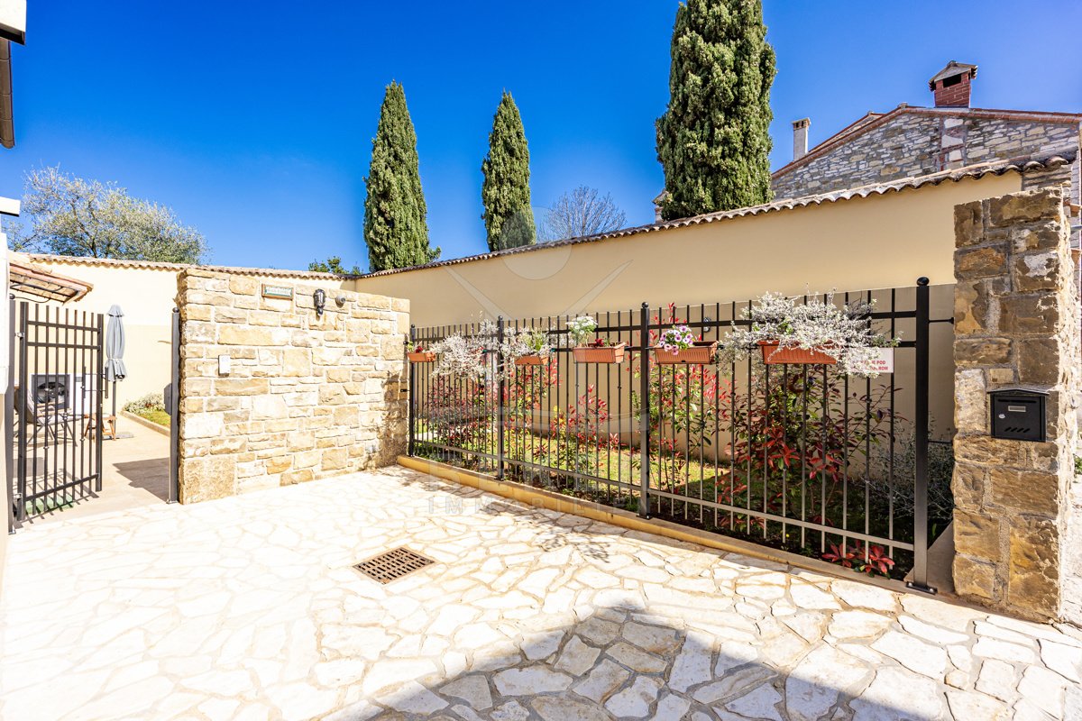 Buje liegt im Norden Istriens, nicht weit von der slowenischen Grenze. Weinberge, Olivenhaine, alte Gassen – hier lebt man ruhig, aber gut angebunden. Die Küste? Zehn Minuten mit dem Auto. Die Autobahn? Gleich ums Eck. Das Haus selbst steht in einer stillen Seitenstraße. Privater Parkplatz direkt vor dem Haus, öffentliche Stellplätze auf der anderen Straßenseite.