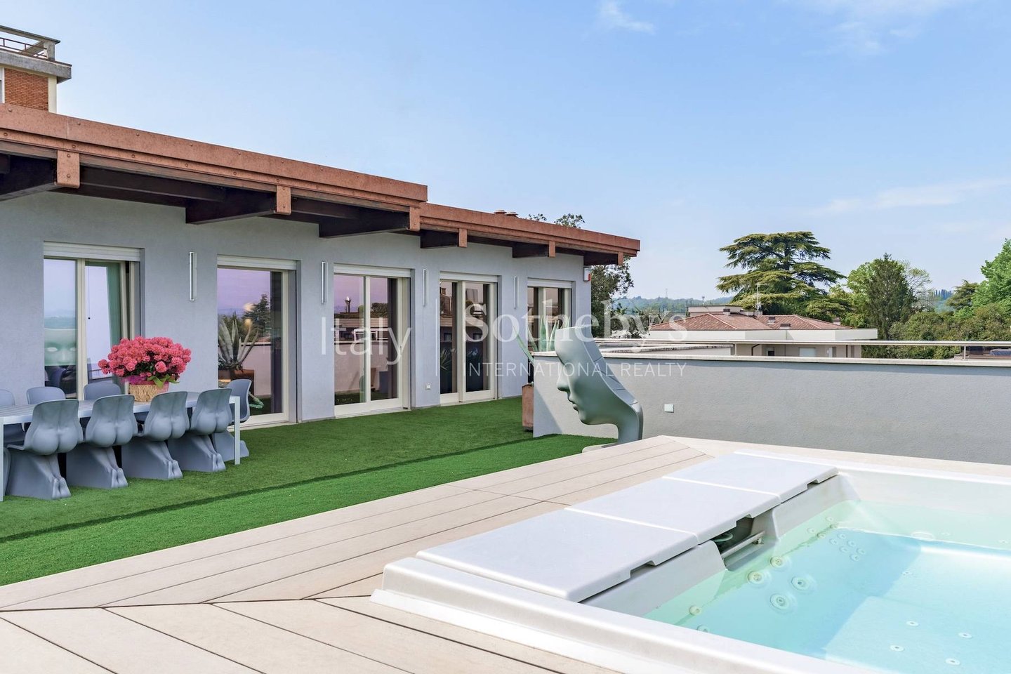 Ein unvergleichliches Penthouse, schwebend zwischen Himmel und dem Gardasee, wo jeder Winkel eine Geschichte von Schönheit und Raffinesse erzählt.