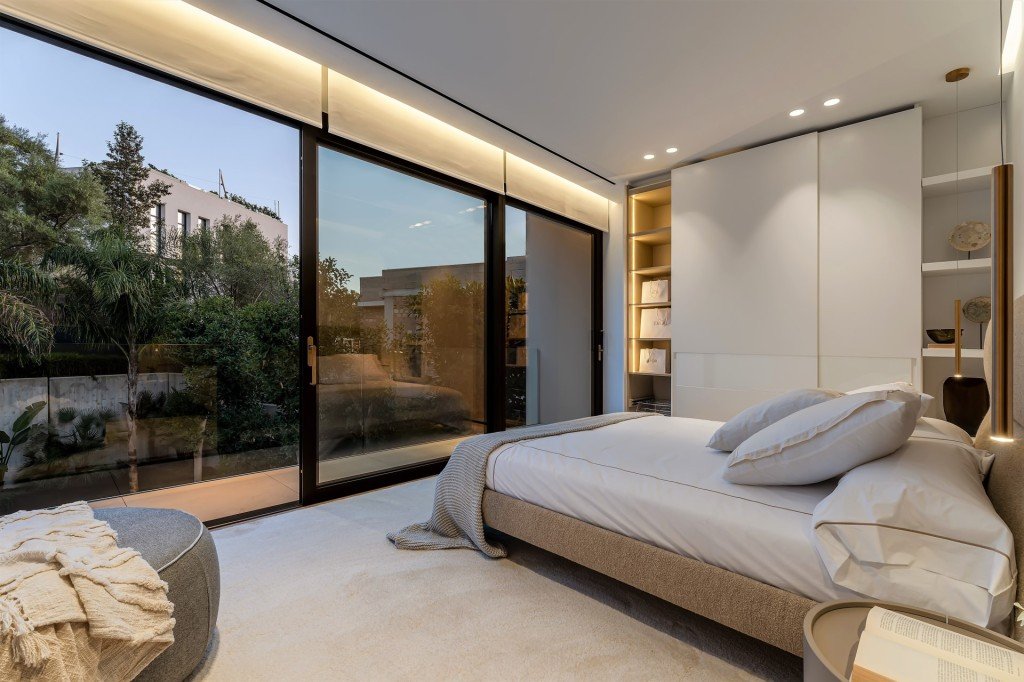 Beim Betreten der Villa werden Sie ein fabelhaftes, offenes Konzept vorfinden, das mit natürlichem Licht gefüllt ist und viel Platz und totalen Komfort bietet. Es gibt eine moderne Küche mit einer Insel und integrierten Gaggenau-Geräten, einen Essbereich und einen einladenden Wohnbereich, die alle von bodentiefen Fenstern profitieren, die Zugang zur geräumigen Terrasse bieten.