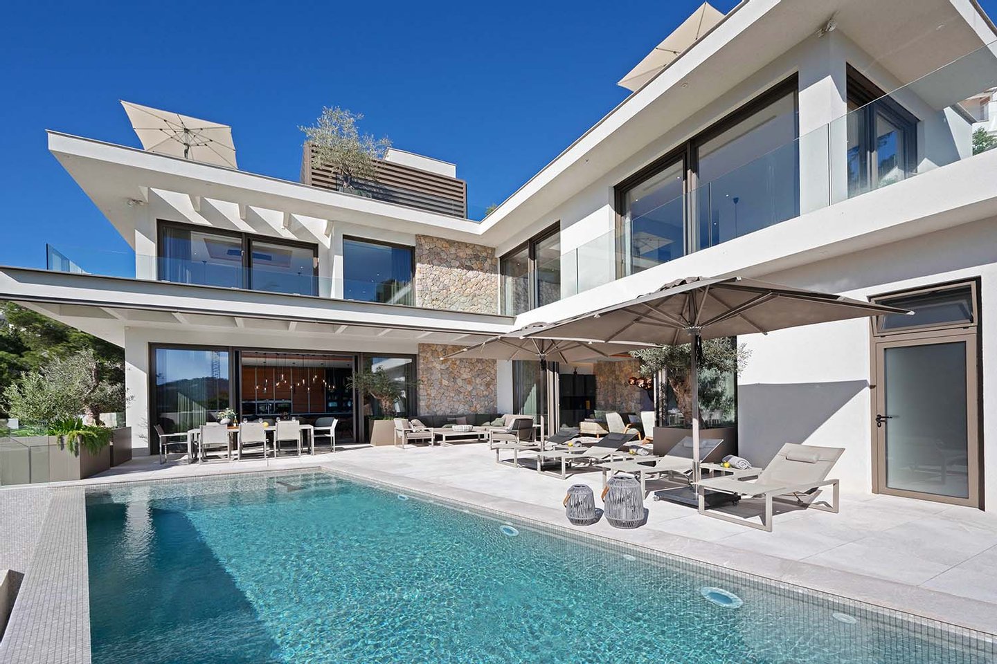 Diese extravagante, moderne Villa „Casa Blanca“ befindet sich in der Urbanisation Can Borras, unweit des Yachtclubs und der malerischen Hafenpromenade von Port Andratx, einem der begehrtesten Küstenorte auf Mallorca. Port Andratx ist bekannt für