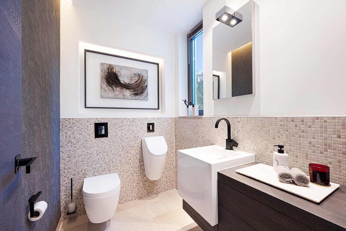 Der stilvoll gestaltete Außenbereich mit einem bis ins Detail konzipiertem mediterranem Garten, großzügigen freien und überdachten Terrassen, Swimmingpool mit Außen-Essbereich, die Dachterrasse mit Chillout-Bereich und nicht zuletzt die modernste Haus- und Sicherheitstechnik mit Smart Home System unterstreichen das elegante, exklusive Ambiente dieses Anwesens.