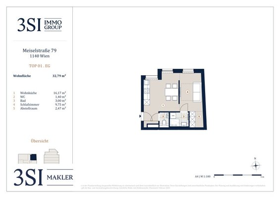 Der guten Ordnung halber halten wir fest, dass, sofern im Angebot nicht anders vermerkt, bei erfolgreichem Abschlussfall eine Provision anfällt, die den in der Immobilienmaklerverordnung BGBI. 262 und 297/1996 festgelegten Sätzen entspricht – das sind 3 % des Kaufpreises zzgl. 20% USt. Diese Provisionspflicht besteht auch dann, wenn Sie die Ihnen überlassenen Informationen an Dritte weitergeben. Letztlich weisen wir darauf hin, dass wir als Doppelmakler tätig sind und ein familiäres/wirtschaftliches Naheverhältnis zwischen der 3SI Makler GmbH und der Verkäuferin besteht.