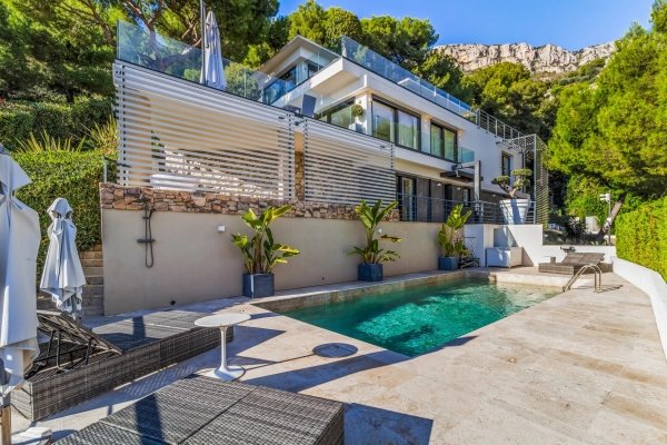 Zeitgenössische Villa von ca. 280 m² Mit großen Terrassen, Pool am Meer und Garten, alles auf 3894 m². von Land.