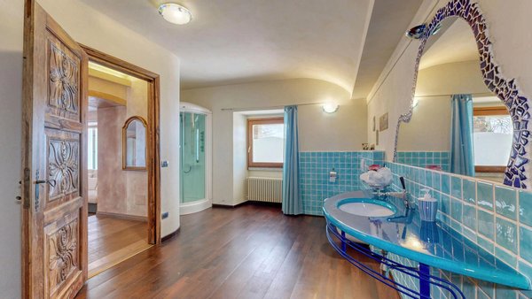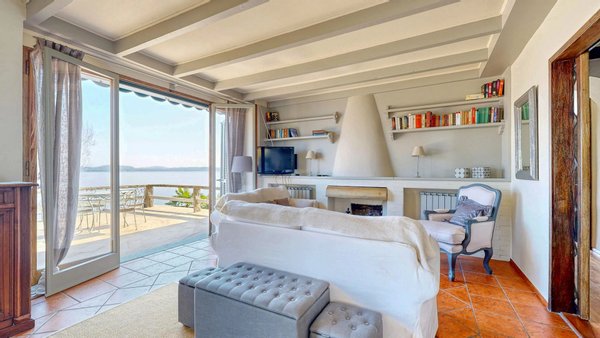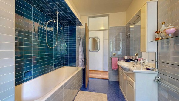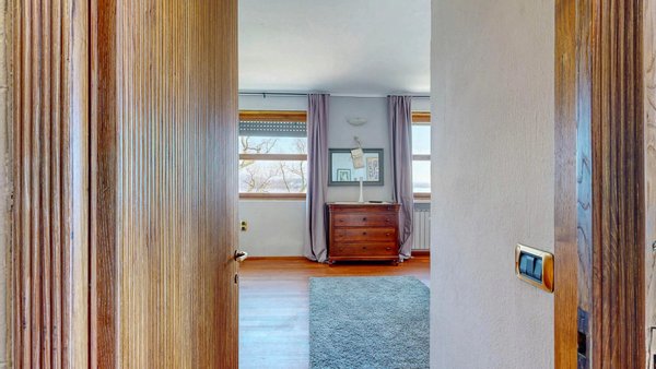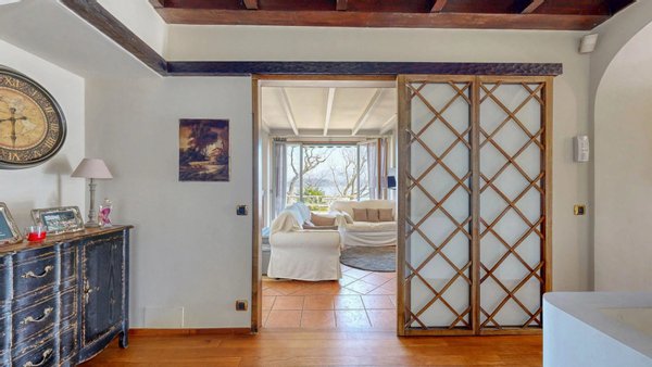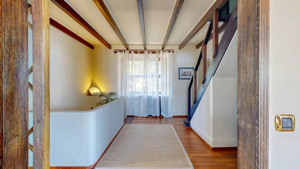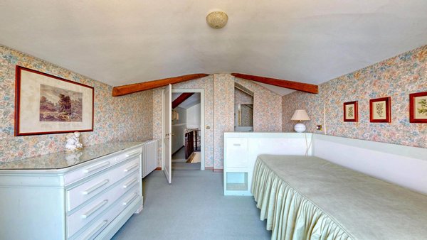 Im weiteren Verlauf des Stockwerks befinden sich zwei Schlafzimmer und zwei Bäder. Von den Schlafzimmern aus hat man einen atemberaubenden Blick auf den See und die umliegenden Hügel, der jedes Aufwachen zu einem einzigartigen Erlebnis macht. Im zweiten Stock, im Dachgeschoss, befinden sich vier Zimmer und ein Badezimmer.