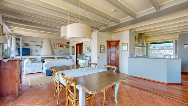 Im ersten Stock befinden sich eine weitere Küche und ein großes Wohnzimmer mit Blick auf eine große Terrasse. Dieser Bereich könnte in Schlafzimmer umgewandelt werden, sollte der Bedarf entstehen.