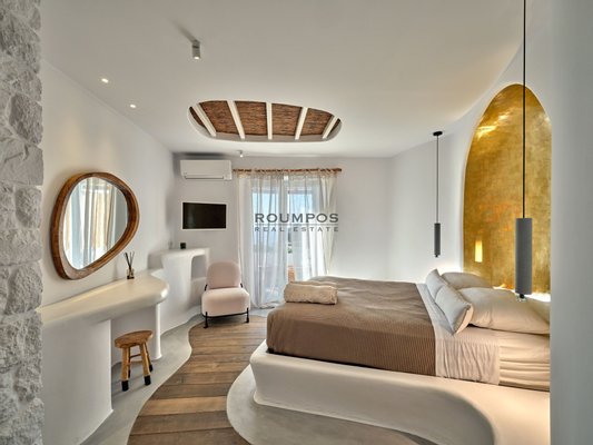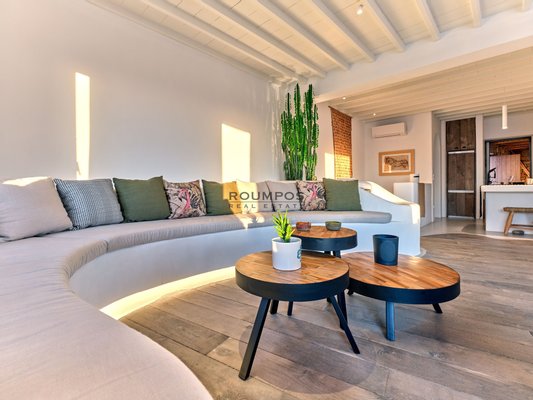 Dieses einzigartige Anwesen wurde 2002 erbaut und 2024 mit einigen der besten Materialien komplett renoviert und verbindet die Architektur von Mykonos mit einem modernen Ansatz.