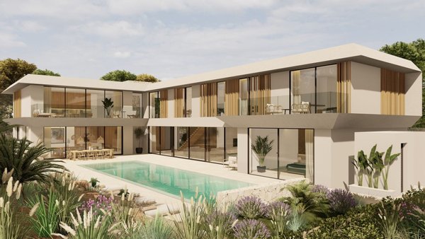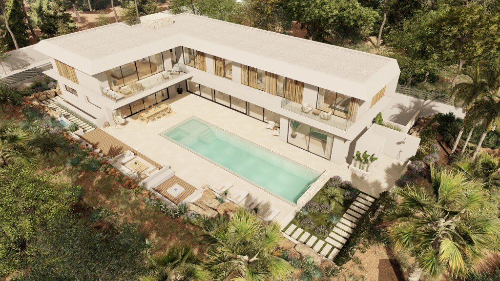 Diese neu gebaute Villa in der prestigeträchtigen Gegend von Nova Santa Ponsa vereint mediterranen Charme mit moderner Eleganz, und das ganz ohne Wartezeit.