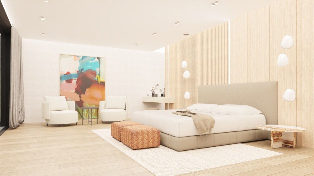 Im Inneren erwartet Sie eine offene Designerküche, ergänzt durch eine zweite, professionell ausgestattete Küche. Das großzügige Wohn und Esszimmer mit Kamin öffnet sich harmonisch zum Außenbereich. Die Villa verfügt über sieben geschmackvoll gestaltete Schlafzimmer und acht Badezimmer (sieben en suite), sowie einen Hauswirtschaftsraum und einen Abstellraum.