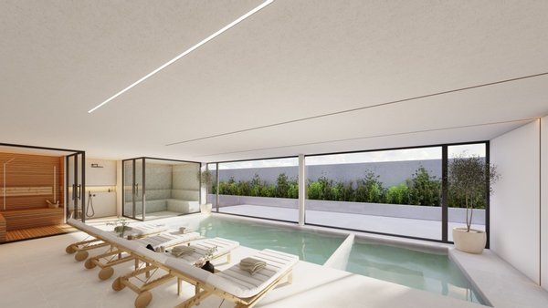 Hochwertige Ausstattungen ziehen sich durch das gesamte Haus. Ein privater Wellnessbereich sorgt für zusätzlichen Luxus. Eine Doppelgarage bietet zusätzlichen Komfort.