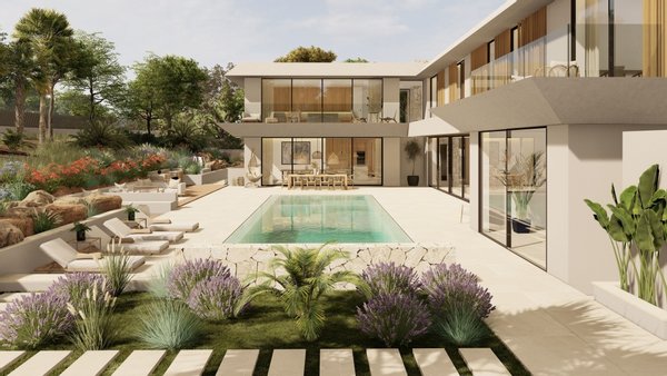 Diese neu gebaute Villa in der prestigeträchtigen Gegend von Nova Santa Ponsa vereint mediterranen Charme mit moderner Eleganz, und das ganz ohne Wartezeit.