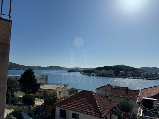Nur 60 Meter zum Meer. Das Haus steht in dritter Reihe in Rogoznica, leicht am Hang. Das bringt einen besseren Blick aufs Meer. Ruhige Nachbarschaft, kurze Wege, klare Struktur. Und: Jeder hat seinen eigenen Parkplatz direkt vorm Haus. Sieben