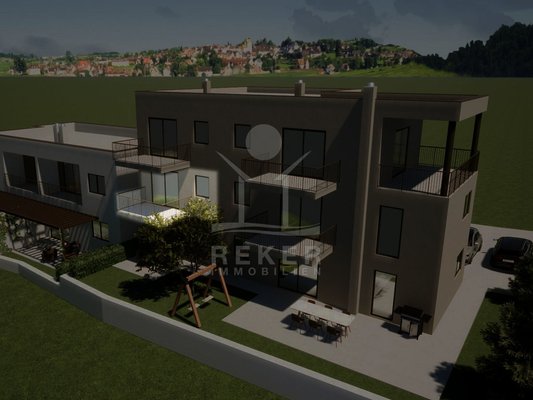 Tar liegt im Herzen Istriens – ruhig, freundlich, zentral. Die Wohnungen entstehen mitten im Ort, nur 100 Meter vom Zentrum entfernt. Alles Wichtige ist gleich ums Eck: Schule, Laden, alltägliche Wege. Trotzdem bleibt es ruhig. Zum Meer sind es etwa drei Kilometer – gut erreichbar, aber weit genug für entspanntes Wohnen ohne Touristentrubel. Geplant sind zwei kleine Wohnhäuser mit je vier Einheiten. Der Bau läuft, Einzug ist für Ende 2026 geplant. Jede Wohnung hat zwei eigene Parkplätze.