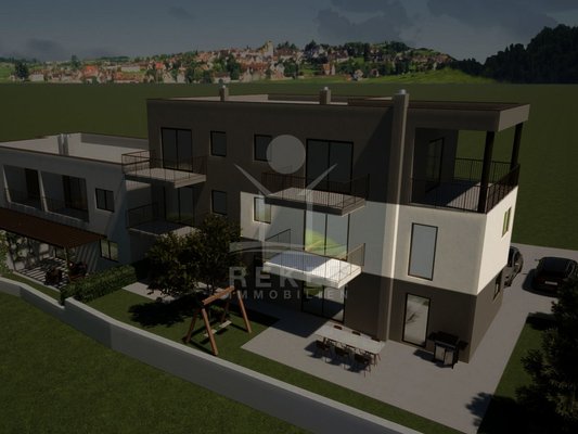 Tar liegt im Herzen Istriens – ruhig, freundlich, zentral. Die Wohnungen entstehen mitten im Ort, nur 100 Meter vom Zentrum entfernt. Alles Wichtige ist gleich ums Eck: Schule, Laden, alltägliche Wege. Trotzdem bleibt es ruhig. Zum Meer sind es etwa drei Kilometer – gut erreichbar, aber weit genug für entspanntes Wohnen ohne Touristentrubel. Geplant sind zwei kleine Wohnhäuser mit je vier Einheiten. Der Bau läuft, Einzug ist für Ende 2026 geplant. Jede Wohnung hat zwei eigene Parkplätze.