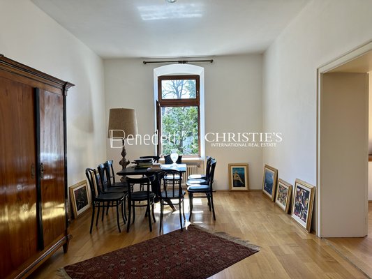 3. Stock – Stilvolles Entree mit elegantem Terrazzo-Boden, drei großzügige Zimmer mit Blick in den historischen Park sowie ein Tages-WC. Zudem gibt es ein Badezimmer im Rohbauzustand. Die Nettofläche beträgt 89 m².