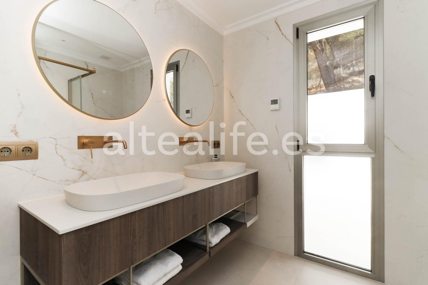 Wir präsentieren diese atemberaubende 213 m² große Villa , die im Jahr 2024 komplett renoviert wurde und sich auf einem geräumigen Grundstück von 1.580 m² in der prestigeträchtigen Gegend der Sierra de Altea befindet. Nur 5 Autominuten von den Stränden und dem charmanten Dorf Altea la Vieja entfernt, wo sich alle notwendigen Dienstleistungen befinden, vereint dieses Anwesen Eleganz, Komfort und eine privilegierte Lage.