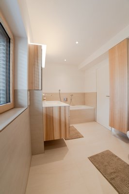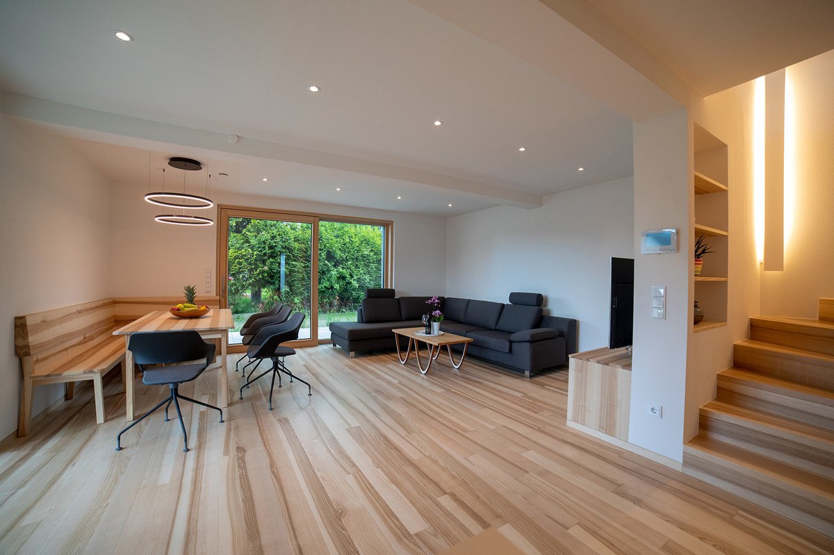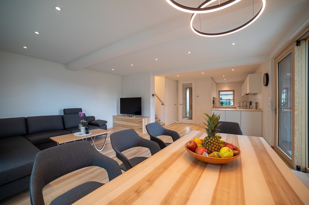 Die ökologische Holzbauweise steht für ein gesundes Wohn- und Raumklima. Ein modernes Luft-Wärmepumpensystem mit Deckenheizung und PV-Anlage und Speicher bietet Ihnen eine sehr hohe Energieeffizienz und leistet somit einen Beitrag zum umweltbewussten Heizen, ohne den Einsatz fossiler Brennstoffe und reduzierter CO2-Emission.