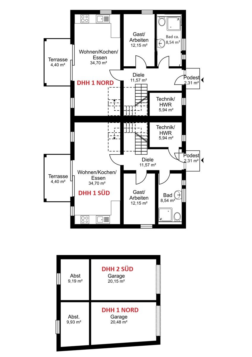 Das neu entstehende Doppelhaus beinhaltet zwei repräsentative Doppelhaushälften mit einer komfortablen Doppelgarage und Vorrichtungen für eine Ladestation.