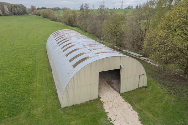 Es besteht aus einem geräumigen Wohnhaus, einer imposanten Scheune, einer großen Lagerhalle in Stahlbauweise und einer praktischen Werkstatt. Außerdem gibt es einen Geräteschuppen, ideal für Hobbyisten oder Landwirte.