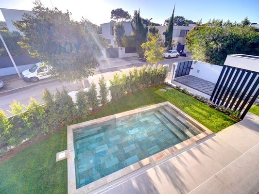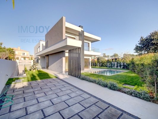 Entdecken Sie diese prächtige freistehende Villa mit 5 Schlafzimmern in Birre, Cascais, moderne Villa, mit Garten, Garage und Swimmingpool, in einer ruhigen Straße, erstklassige Lage, Wohngebiet nur mit Villen, nur wenige Minuten vom Zentrum von